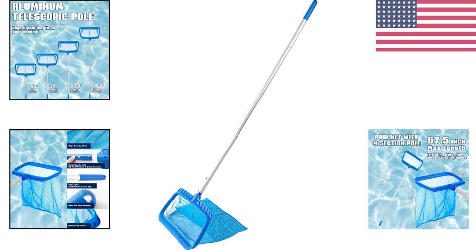 Features: Easy Installation,Flexible,Adjustable Pole,Large Opening,High Capacity,Easy to Clean,Easy to Use,Lightweight,Durable,Safe for Use in Pools