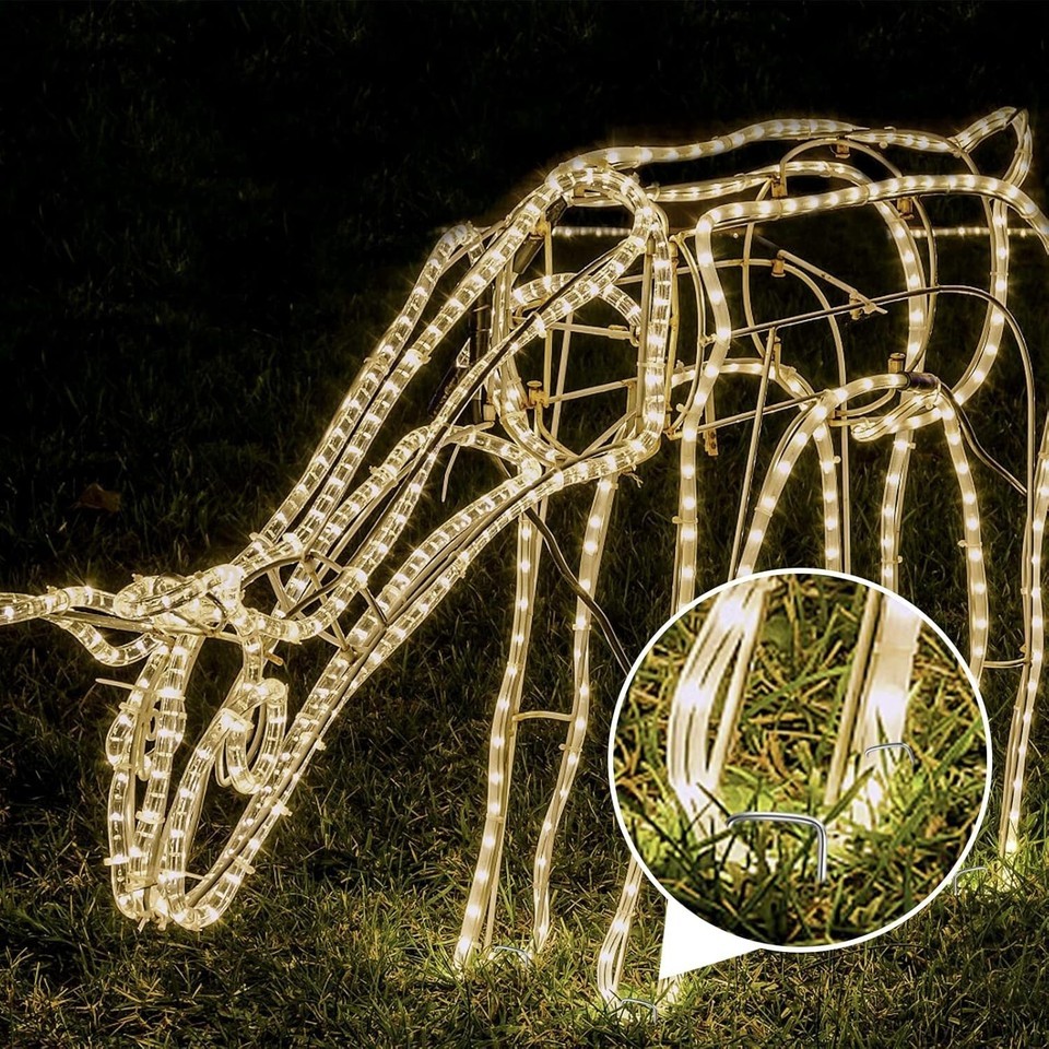 Perfect for anchoring landscape fabric, securing weed barriers, sod, tents, fences, cages, netting, tarps, hoses, and Christmas decorations.