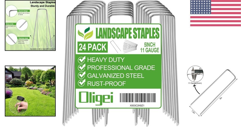 - Durable Galvanized Garden Stakes - 24 Pack Heavy-Duty U-Shaped Landscape Anchors