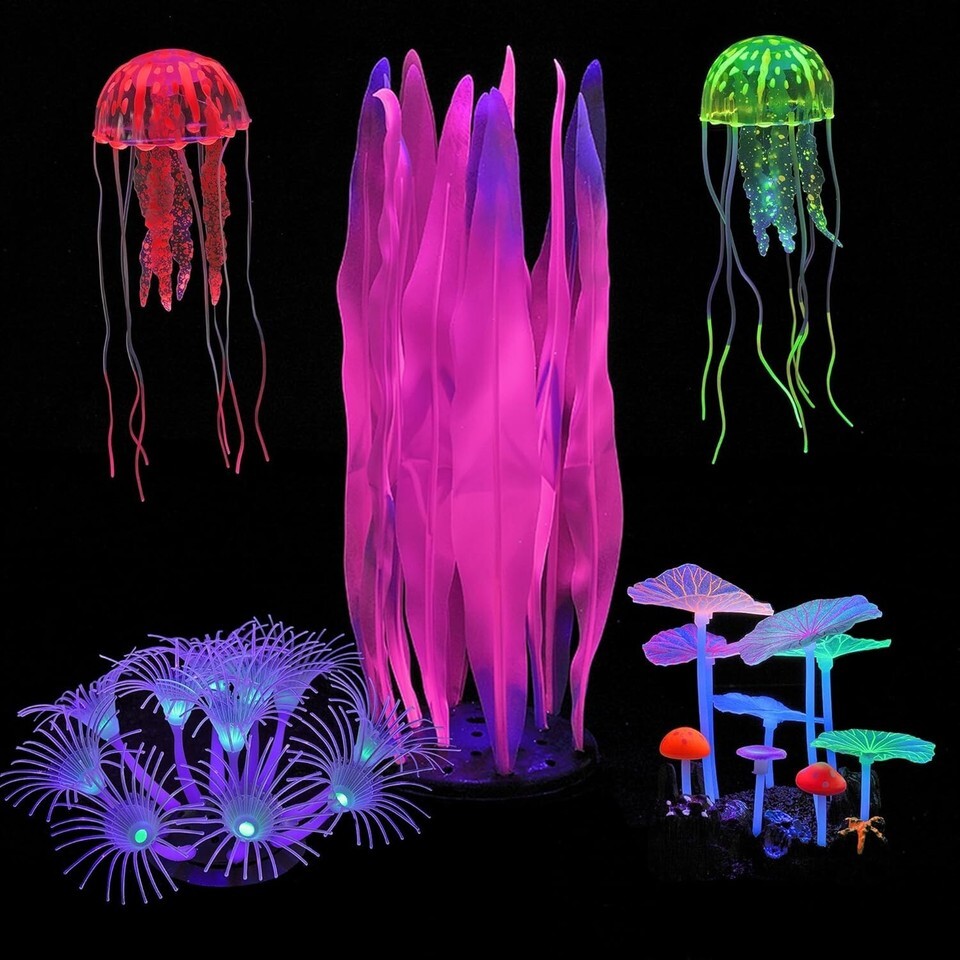 Includes 5 stunning aquarium decor pieces: 1 x Kelp, 1 x Mushrooms, 1 x Sunflower, and 2 x Jellyfish.