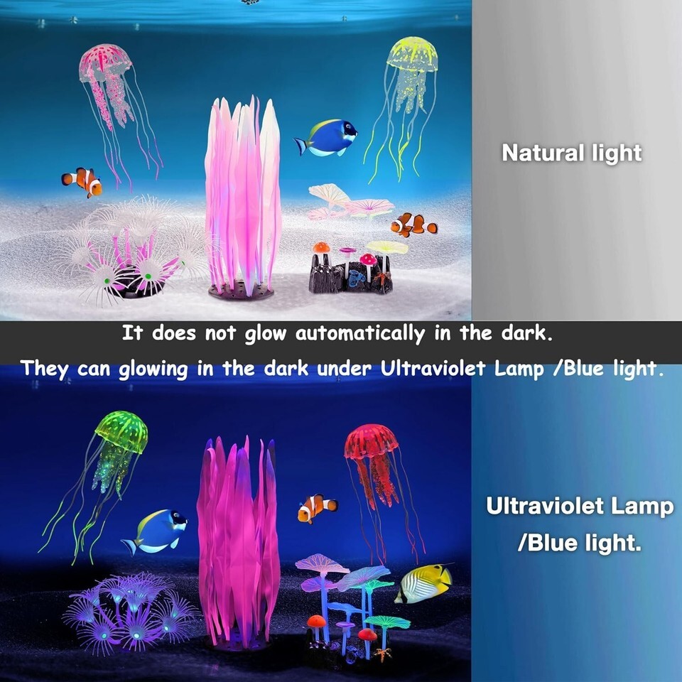 Transform your aquarium into a magical underwater paradise with our Durable Glow-Inspired Decorations. Each piece, meticulously crafted from non-toxic materials, brings beauty and vibrancy to your tank. Experience the stunning glow created under special lighting ? a sight that will mesmerize both you and your aquatic pets.