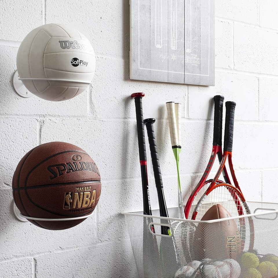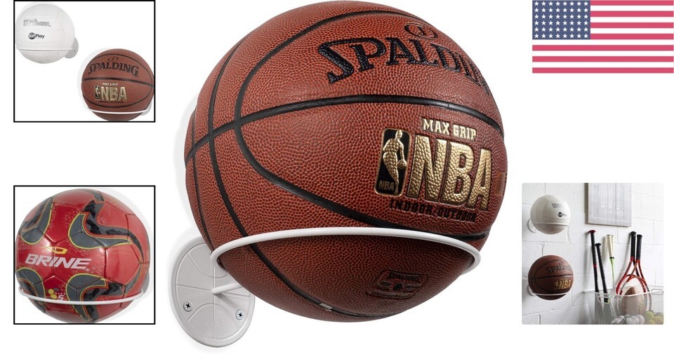 Perfect for displaying a variety of sports balls including basketballs, footballs, volleyballs, and soccer balls.