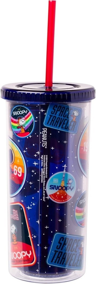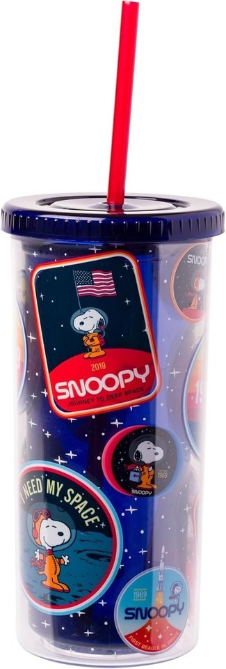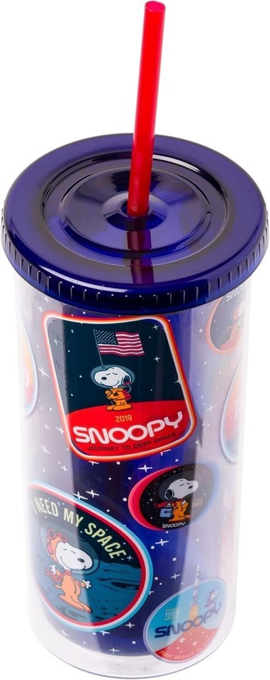 - Durable Snoopy Space Traveling Cup - 20oz Cold Drinkware with Reusable Straw