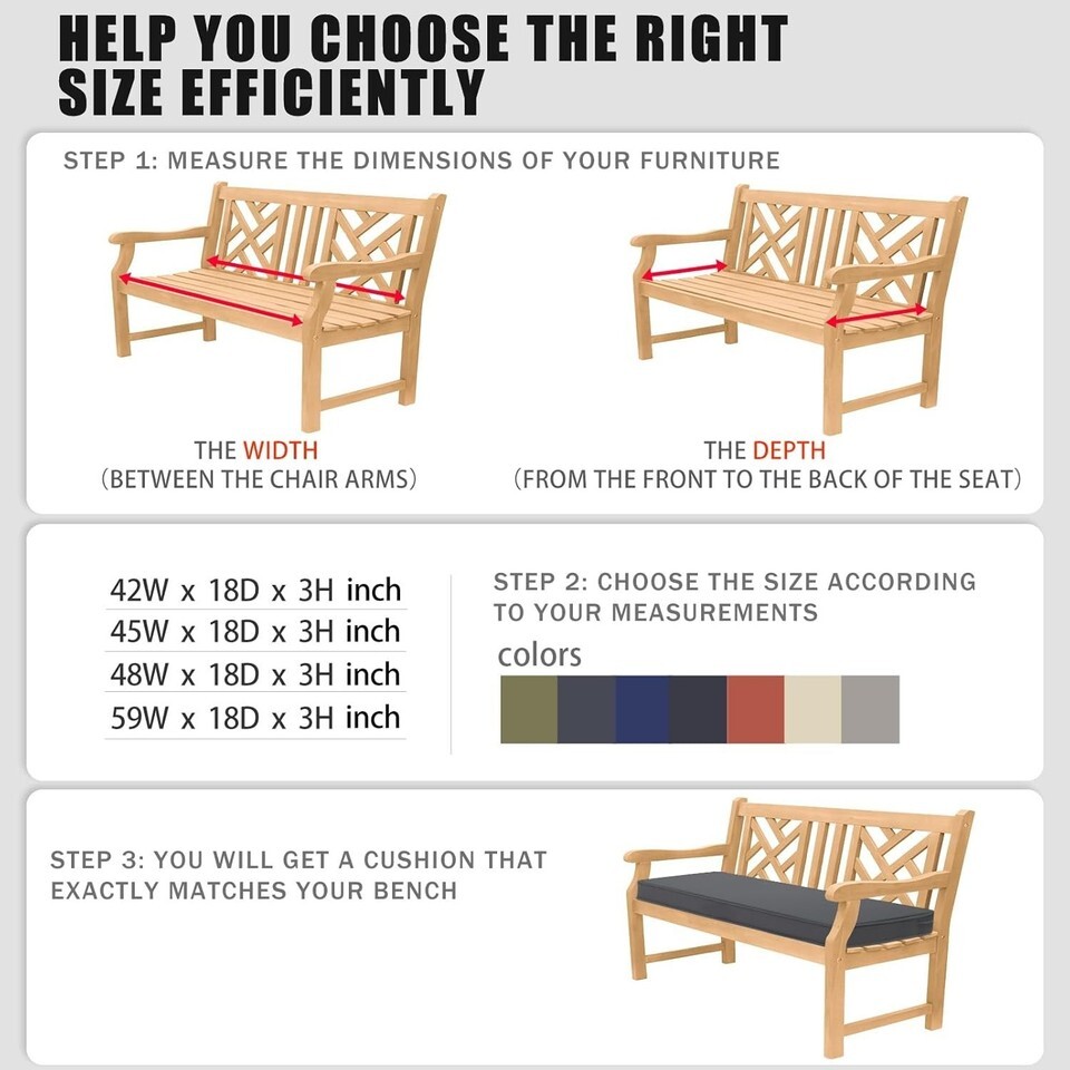 - Durable Waterproof Outdoor Bench Cushion 48" x 18" with 3- Color Protection