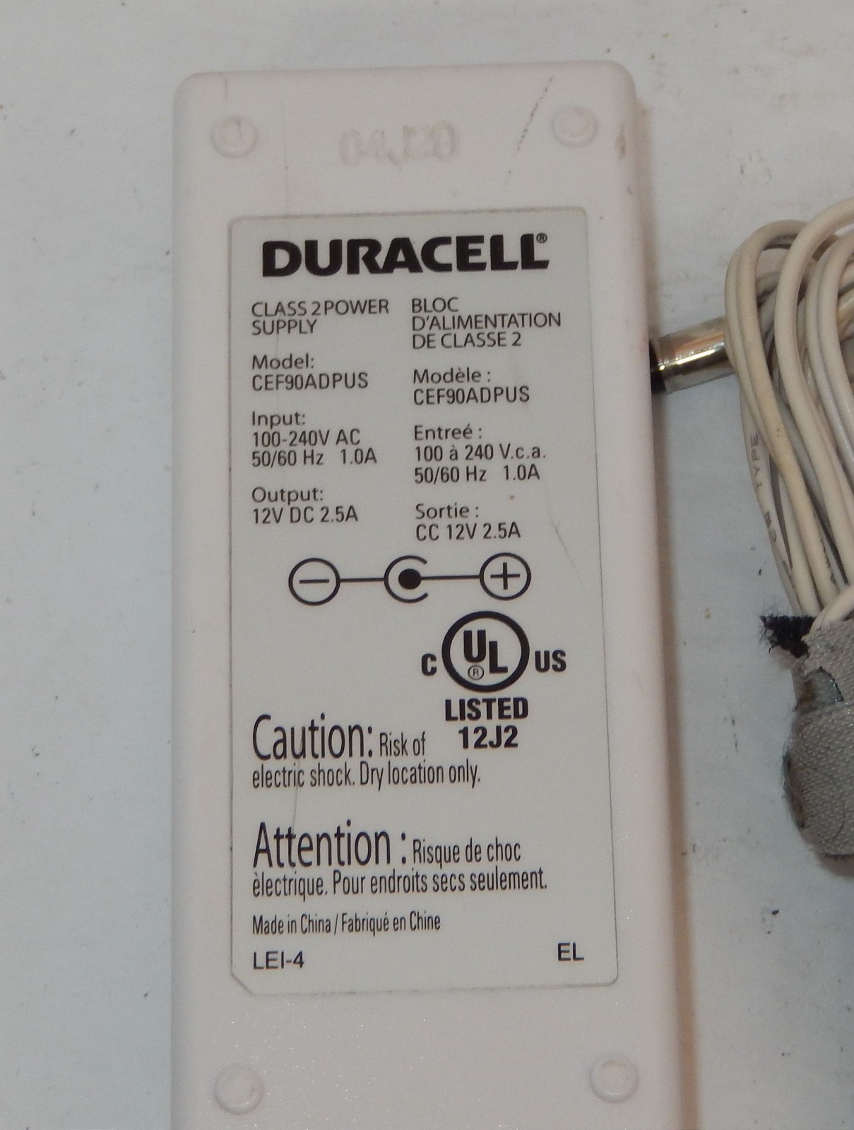 - Duracell CEF90ADPUS Class 2 Power Supply Adapter Output 12VDC 2.5A