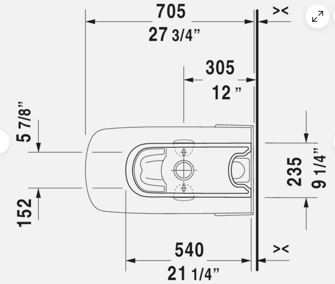 Overall Depth: 27-1/2" (furthest point back to front of toilet)
