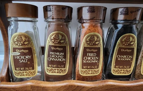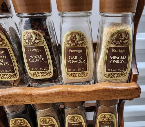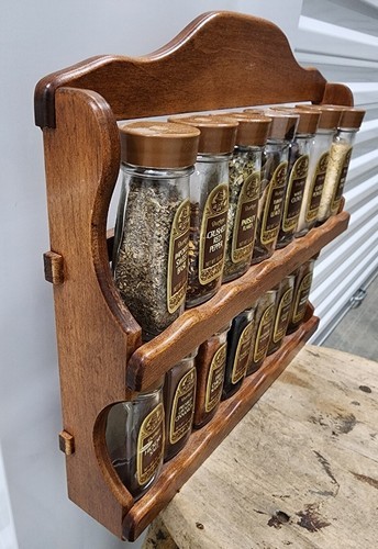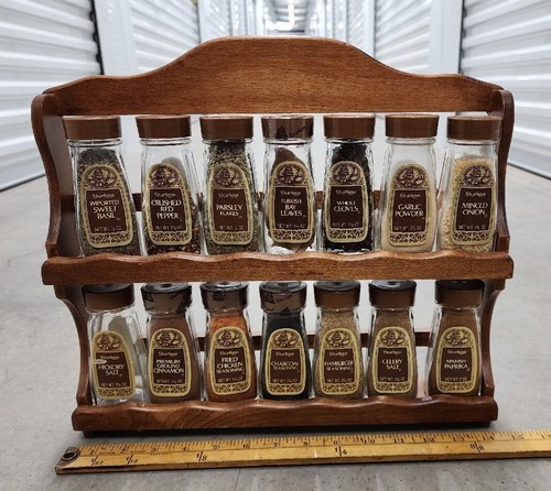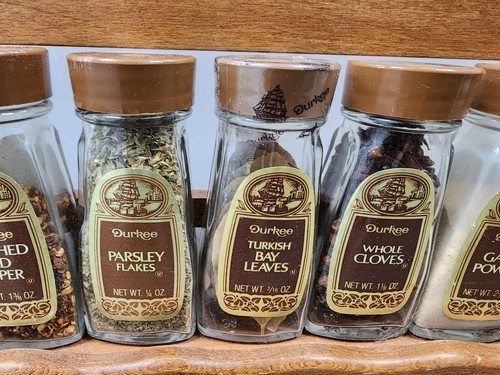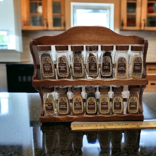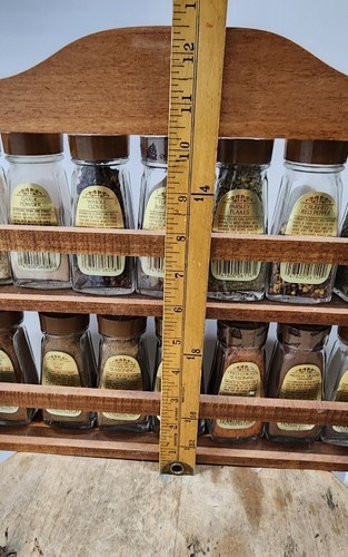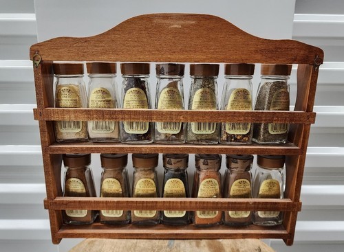 Durkee Foods Wooden Spice Rack Complete with 14 Glass Spice Jars 1970s Vintage