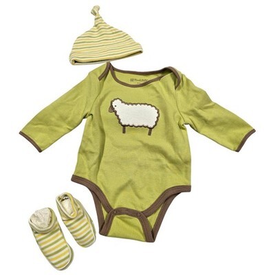 Keywords: baby outfit, baby bodysuit, baby hat, baby socks, sheep print, animal baby clothes, newborn outfit, baby shower gift, Dwell Studio, Target baby, organic baby clothes, cotton baby set, striped baby clothes, gender neutral baby, 0-3 months