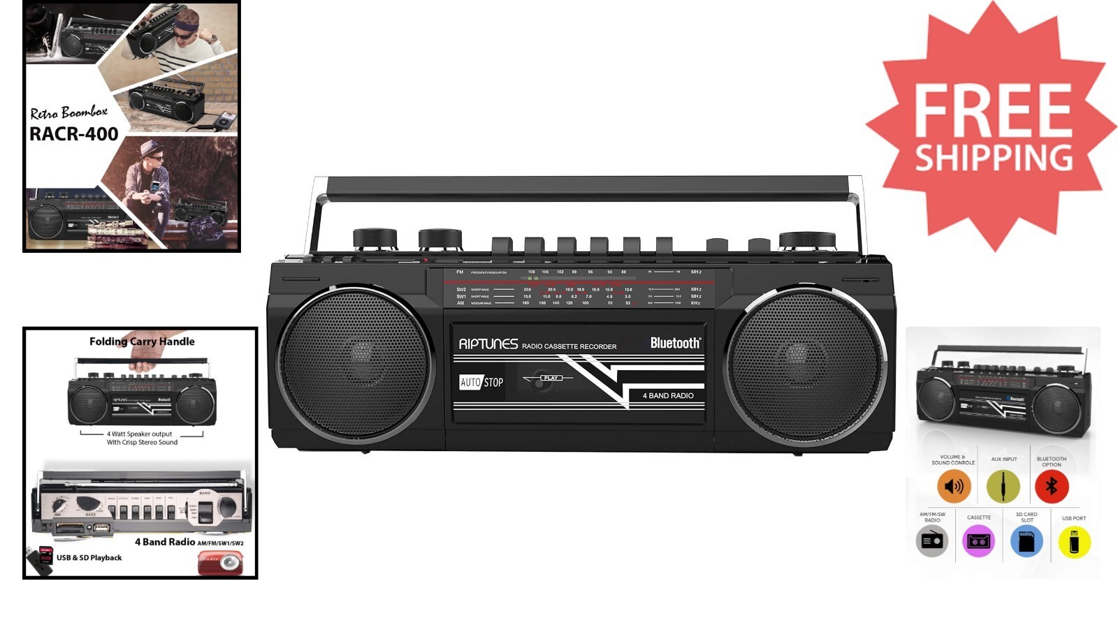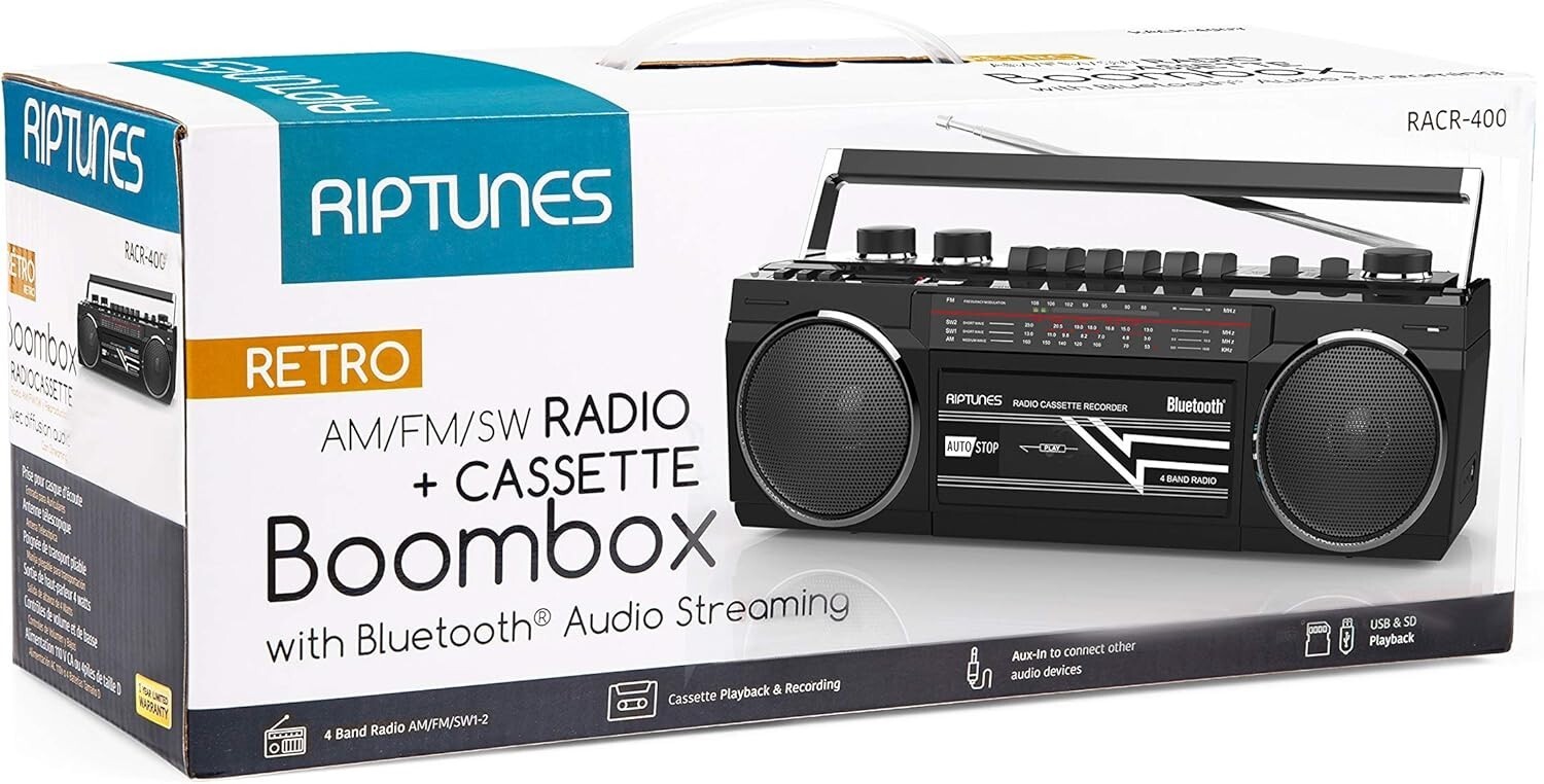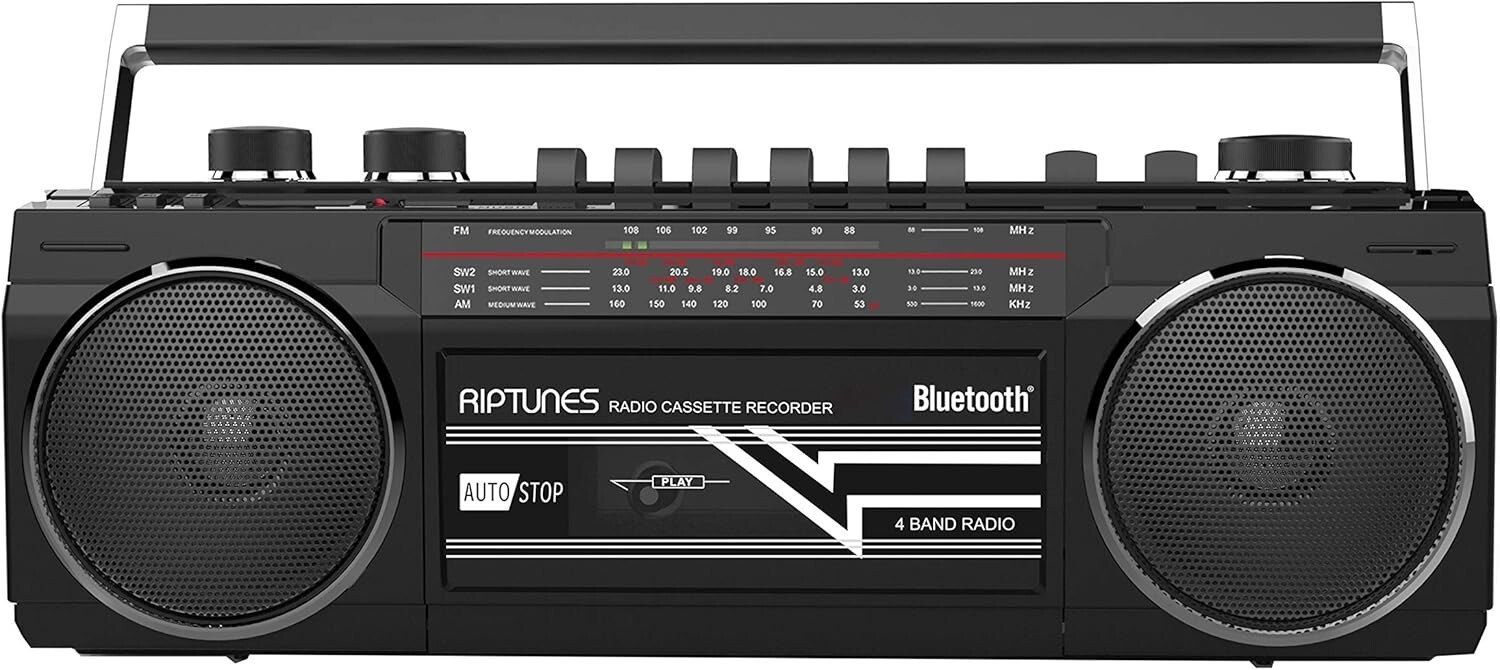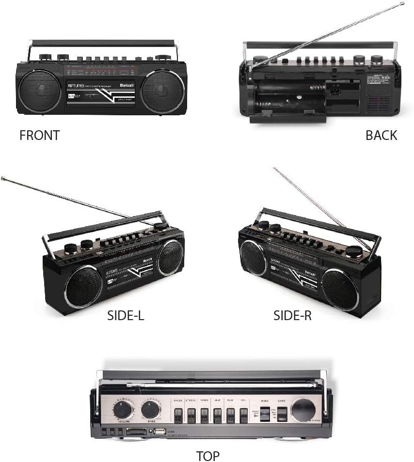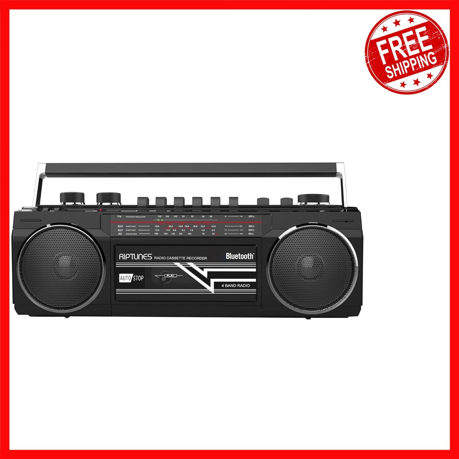 Dynamic Stereo Bluetooth Boombox - Retro Cassette Player AM Radio ? Black