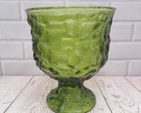 - E.O. Brody Co Avocado Green 70s Crinkle Glass Pedestal Bowl Planter Vase Vintage