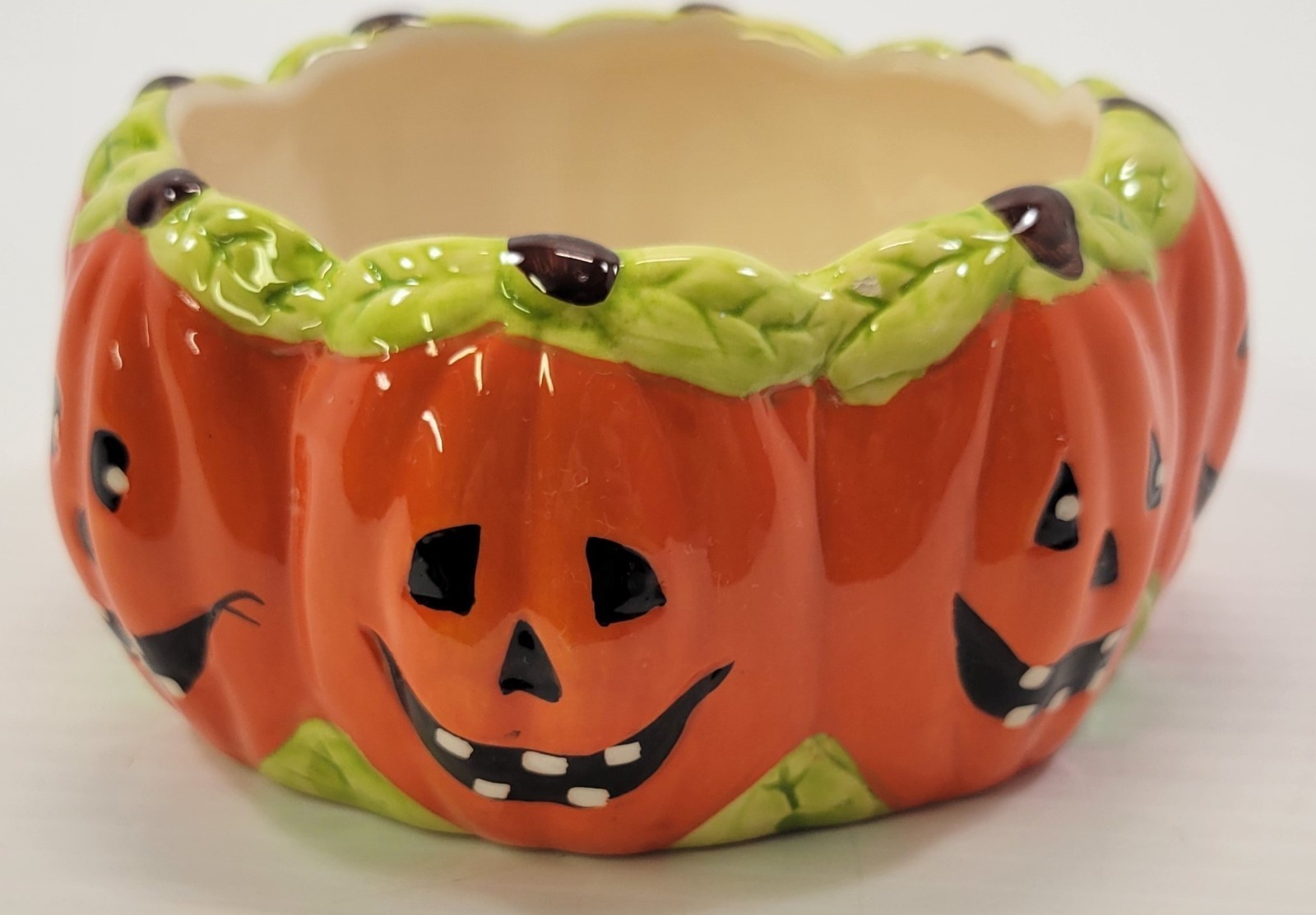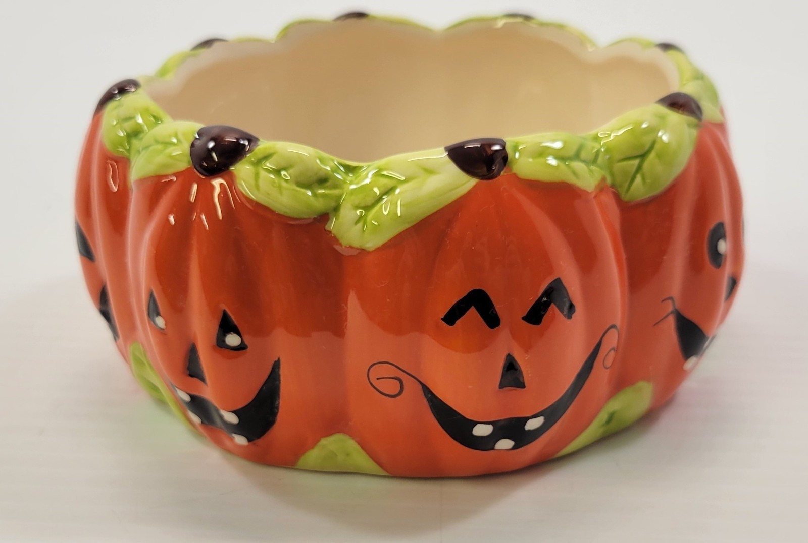 E) Royal Norfolk Ceramic Pumpkin Jack-O-Lantern Halloween Candy Dish Bowl