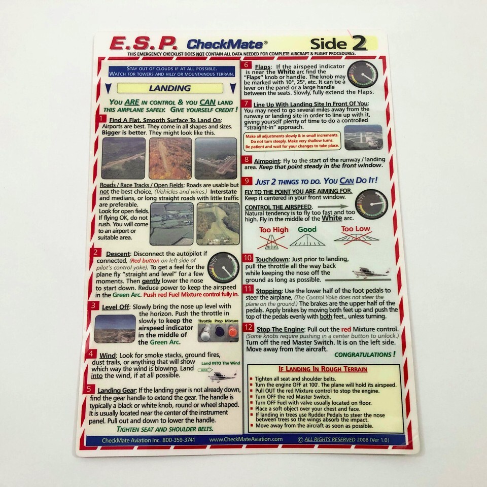 - E.S. P. CheckMate Emergency Substitute Pilot Laminated 7.5 x10.25 inches