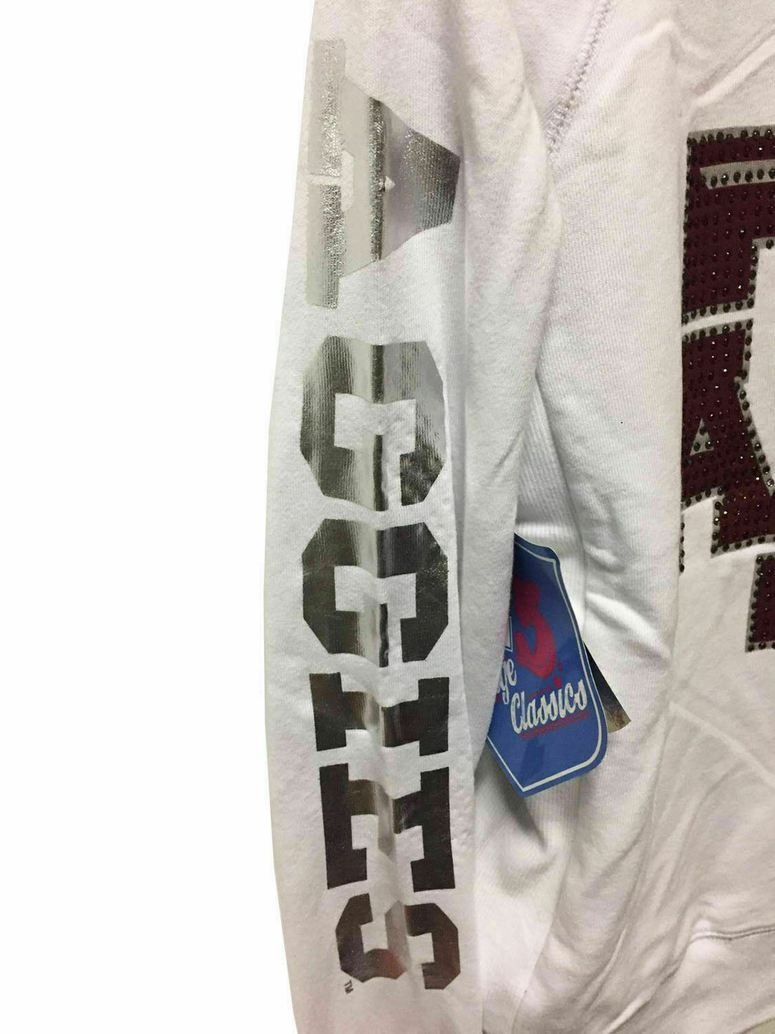 E5 College Classics Texas A M Aggies Sudadera con capucha y cremallera completa con brillo, blanco, grande