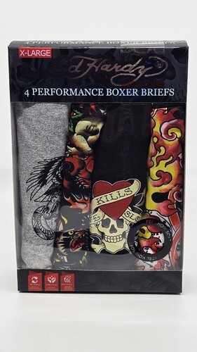 - ED Hardy Men's Size XL 40 - 42 (4) Pack Graphic Performance Boxer Briefs NEW