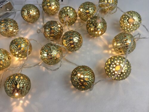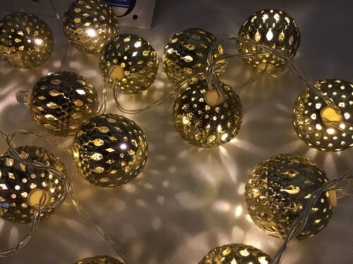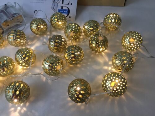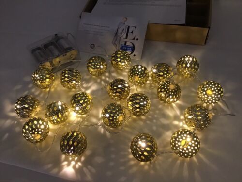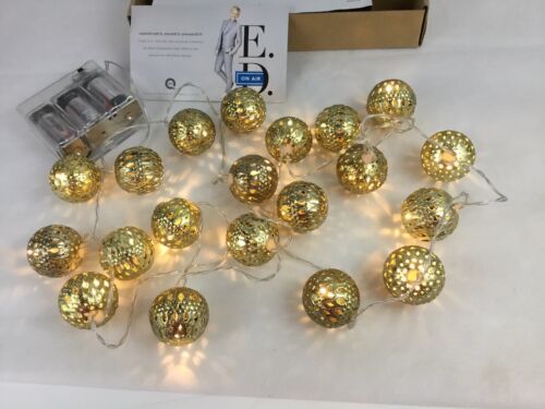 - ED Punched Gold Metal 20 Sphere Light Strand By Ellen Degeneres NEW Christmas
