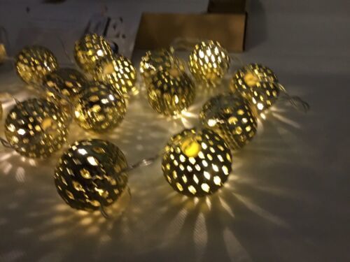 ED Punched Gold Metal 20 Sphere Light Strand By Ellen Degeneres NEW Christmas