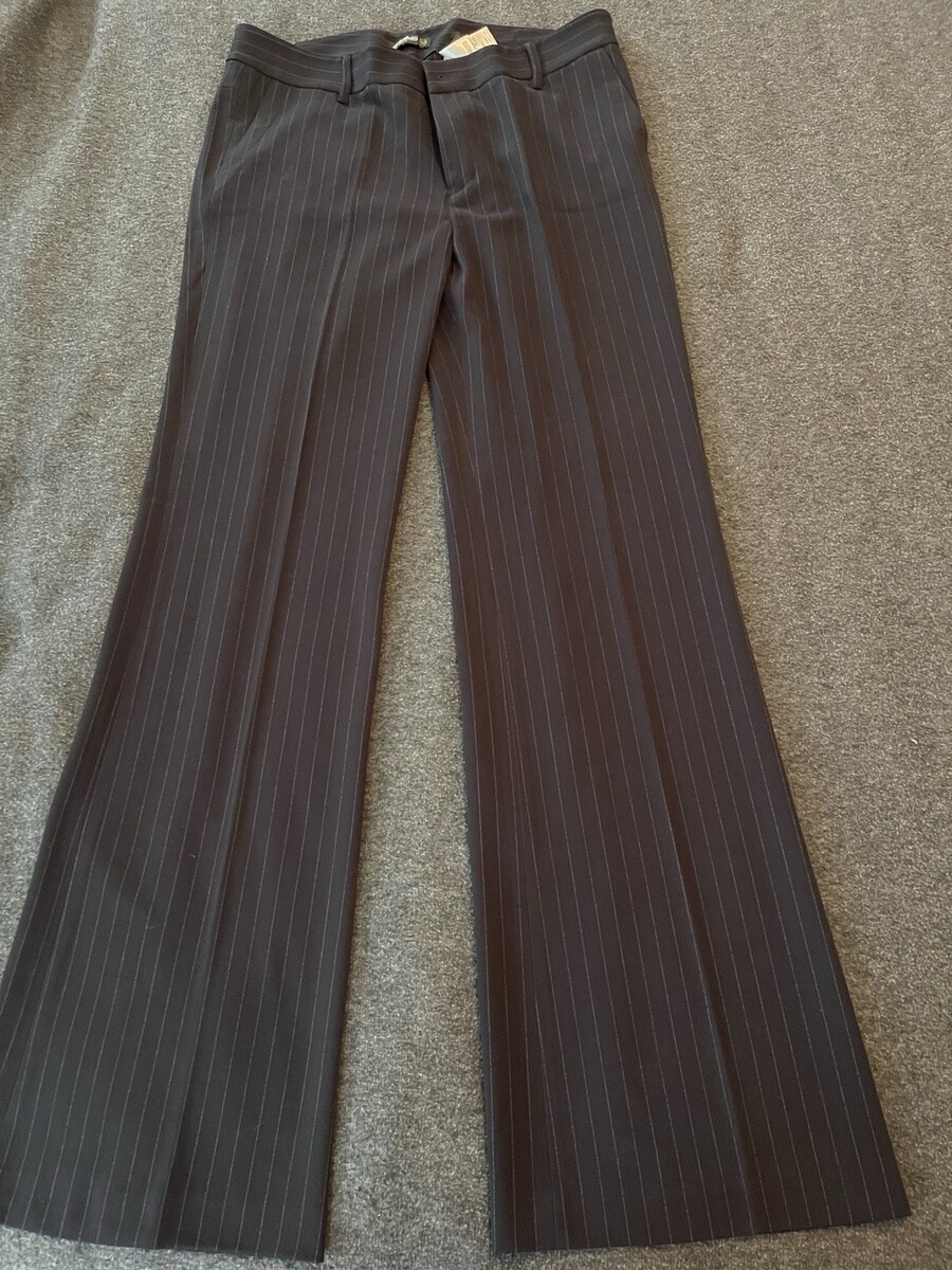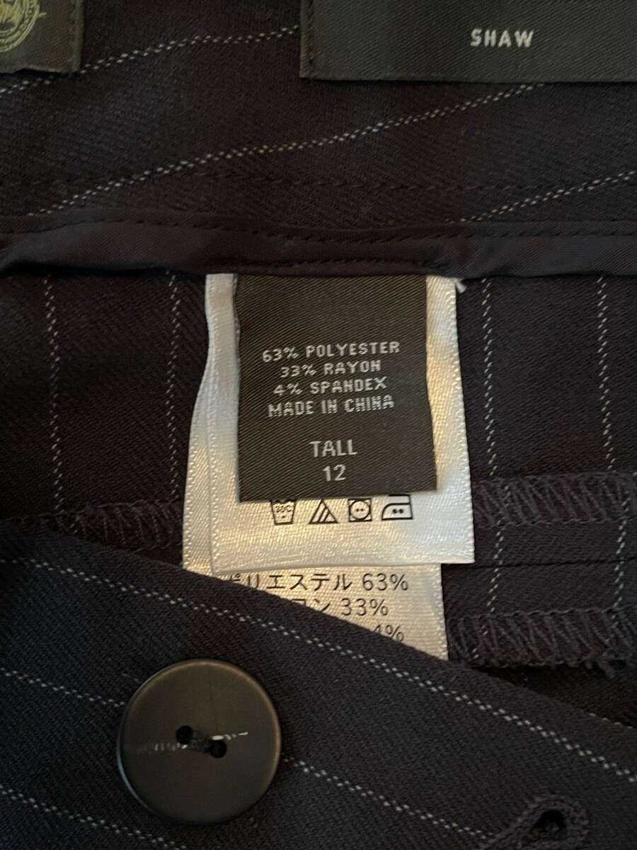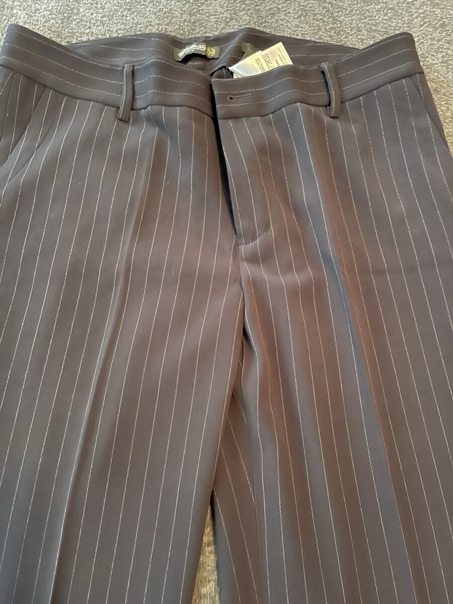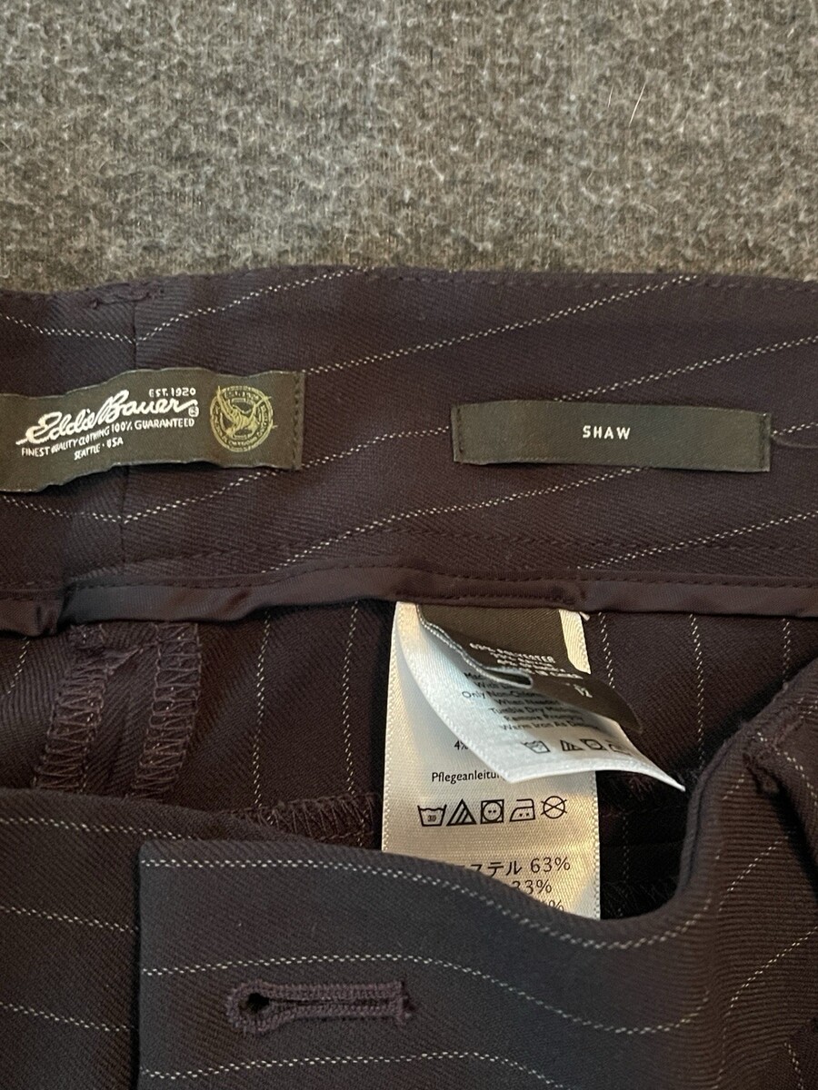 - EDDIE BAUER Women’s 12 TALL Shaw Fit Flat Front Trousers Pants Black Pinstripe
