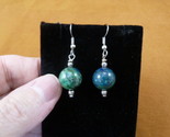 - EE702-1) Green blue Rudy Zoisite 12mm beaded gemstone silver dangle earrings