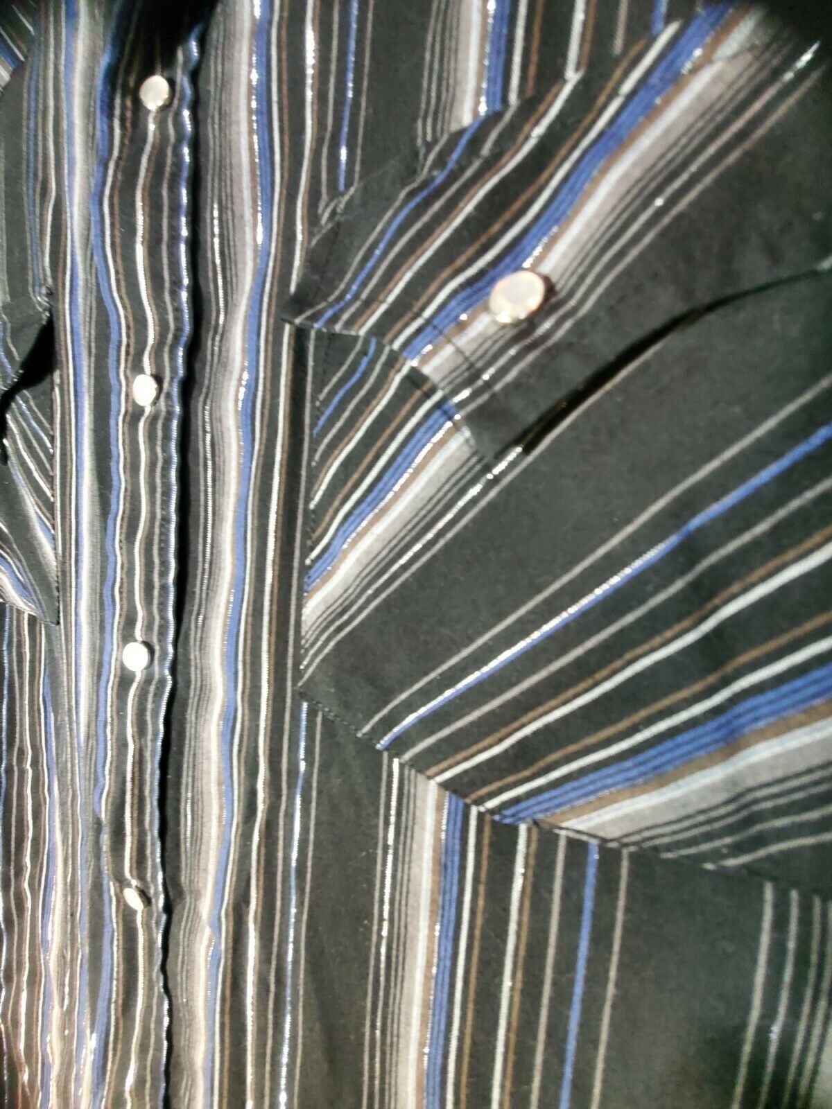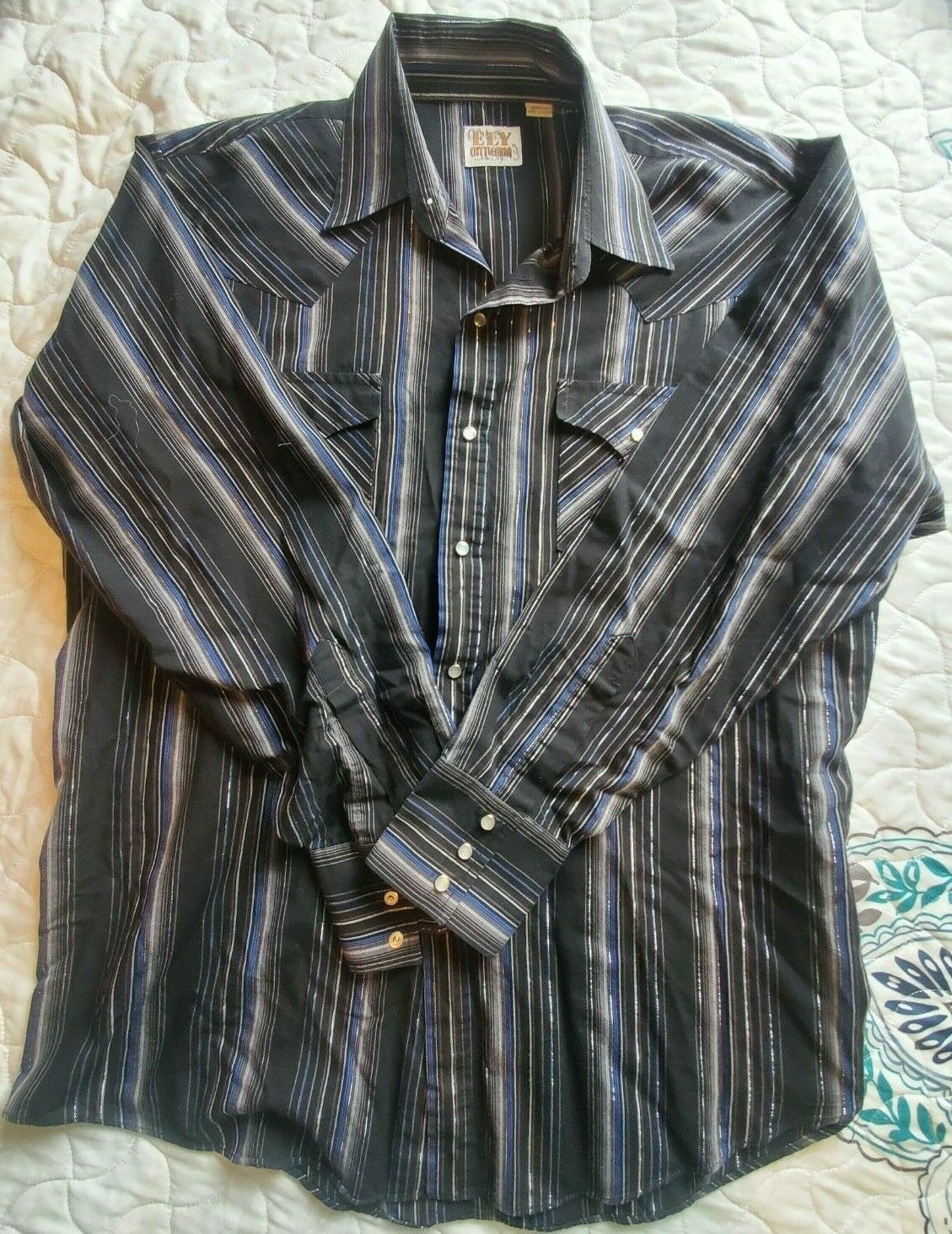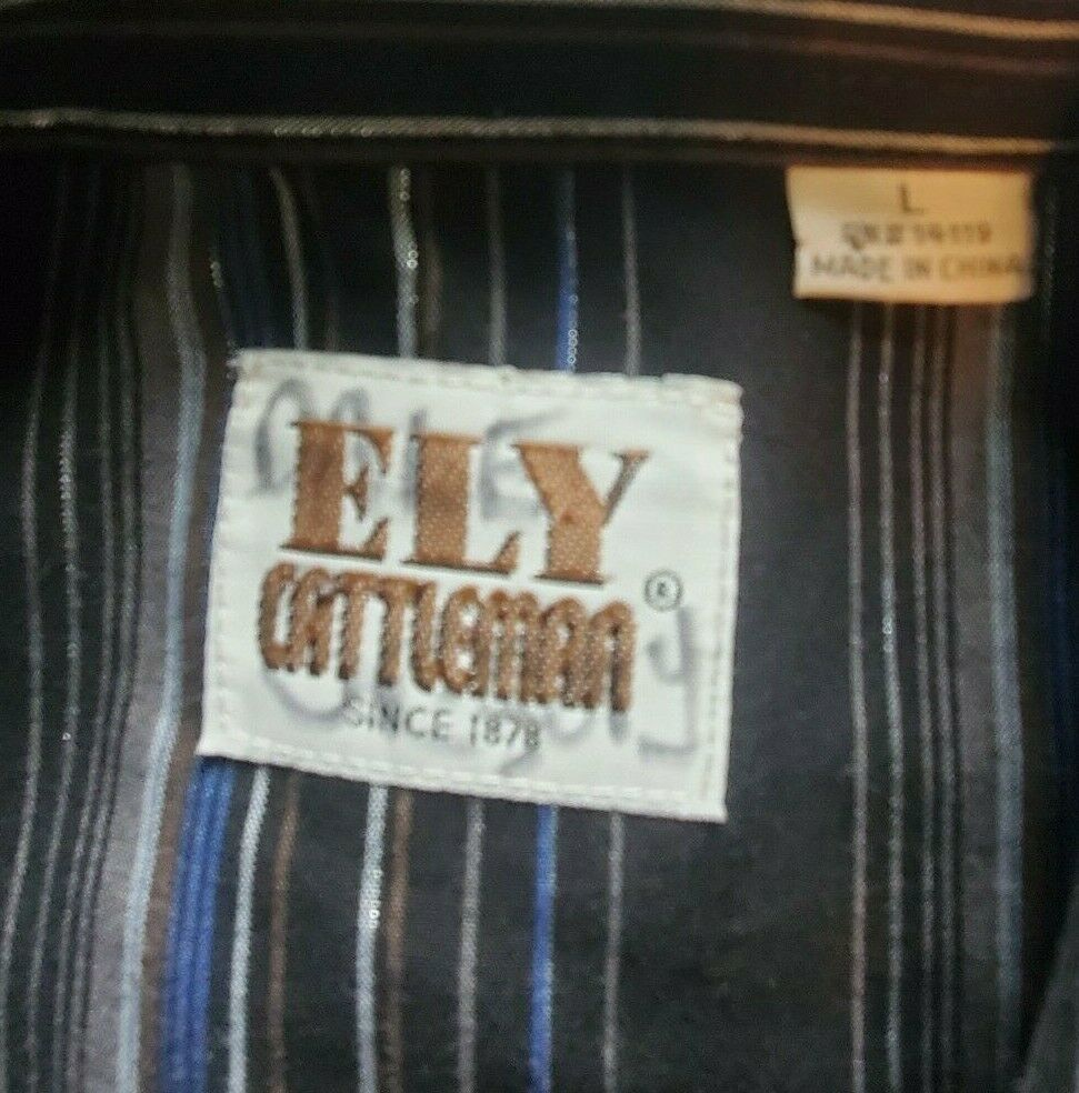 - ELY CATTLEMAN Men's Shirt Size Large Snap Pearl Striped Black Rodeo Western