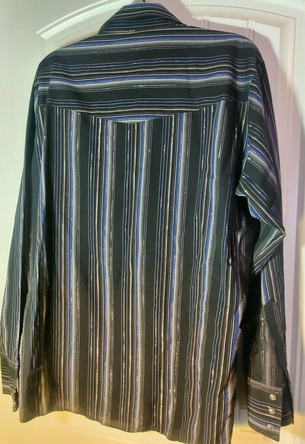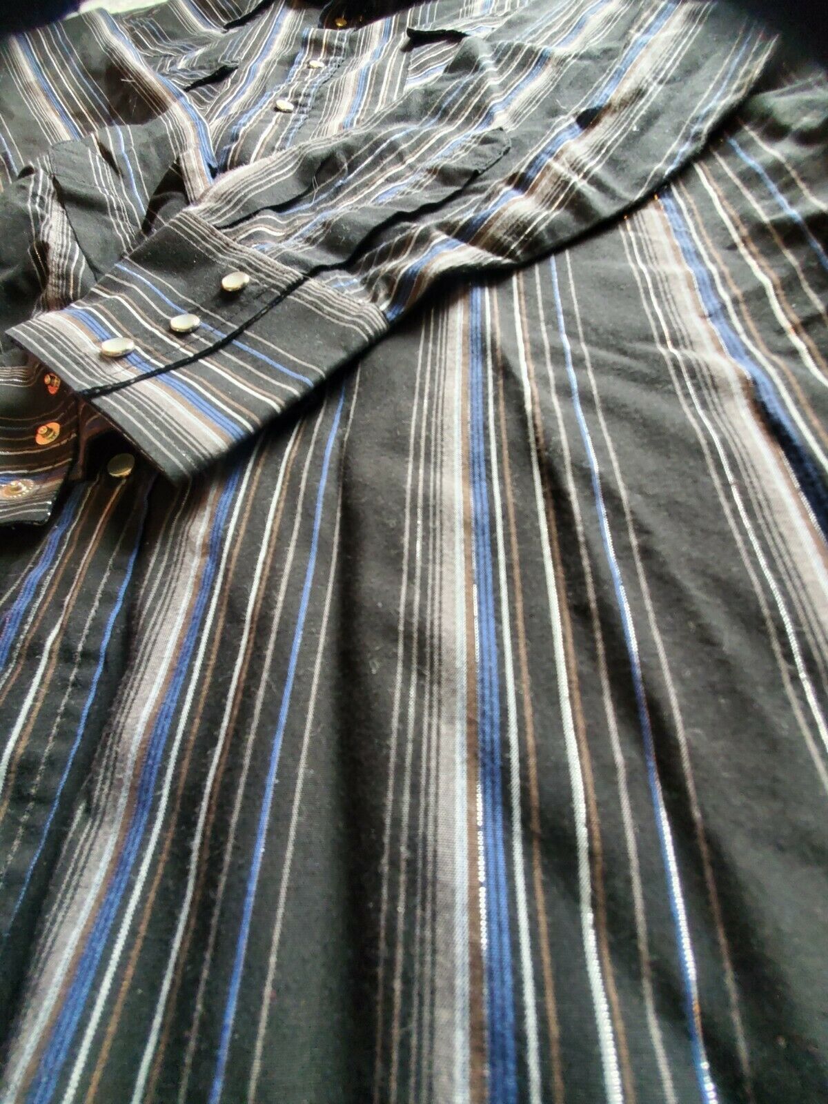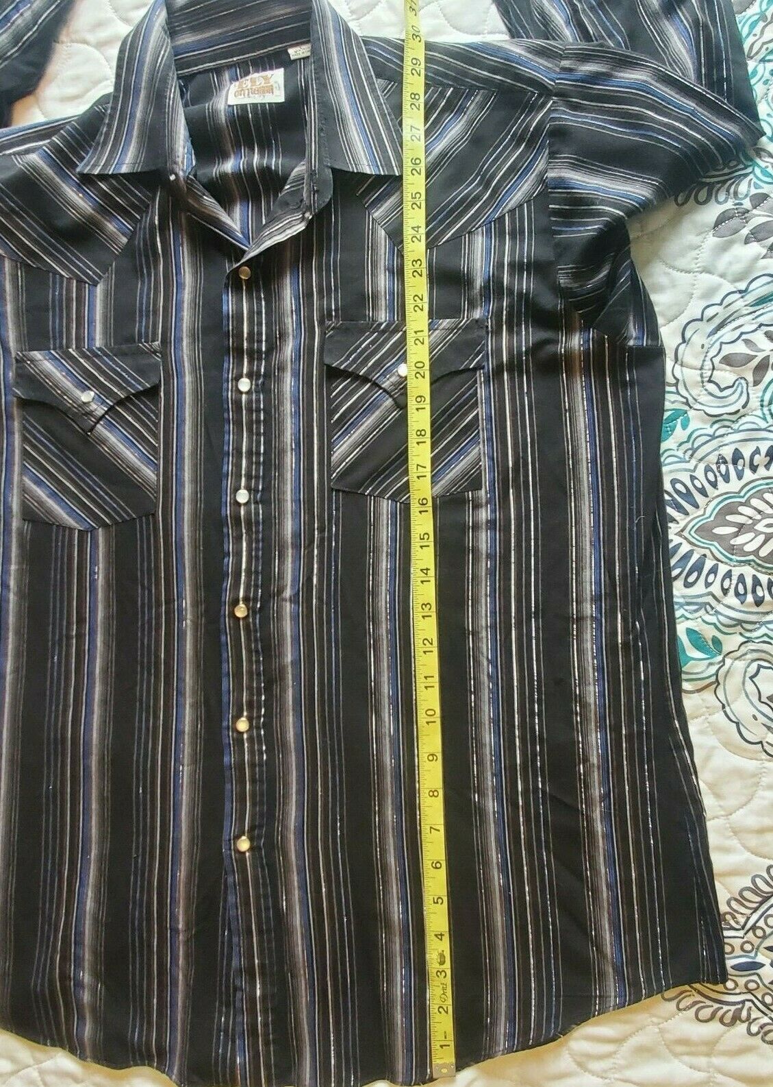 - ELY CATTLEMAN Men's Shirt Size Large Snap Pearl Striped Black Rodeo Western