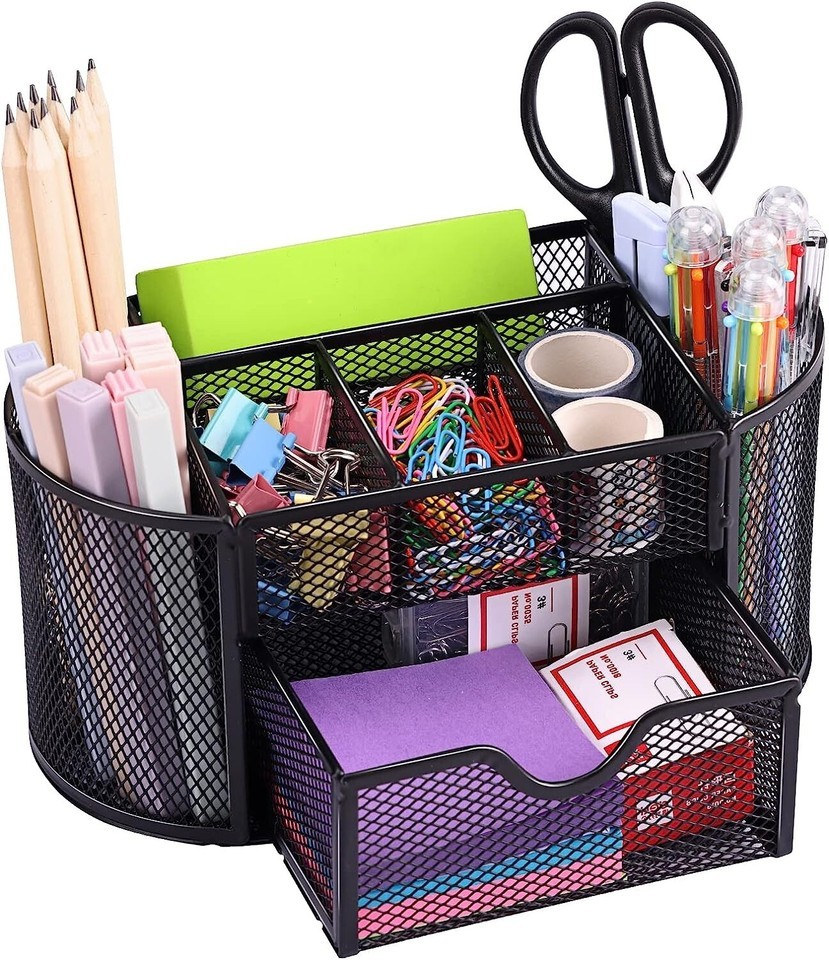- EOOUT Desk Organizer, Pencil Holder for Desk, Mesh Office Desk Accessories with