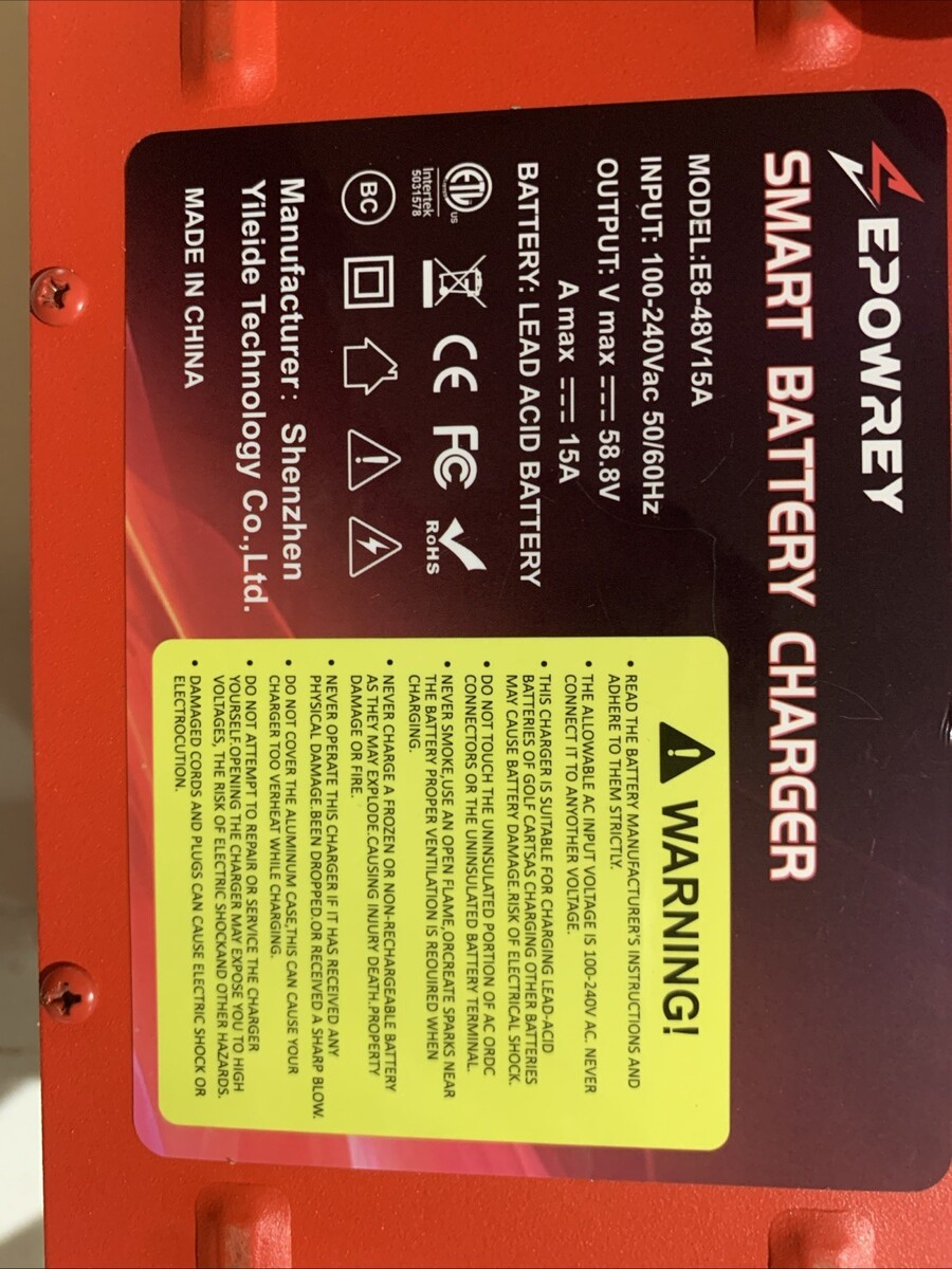 - EPOWREY 15 AMP Golf Cart Battery Charger 48 Volt 3-pin Triangular Plug for EZGO