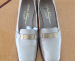 - EUC Beige Ferragamo Gold Buckle Detail Loafers SZ 9 AA Made in Italy