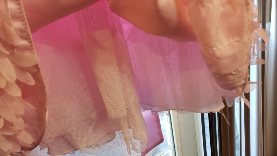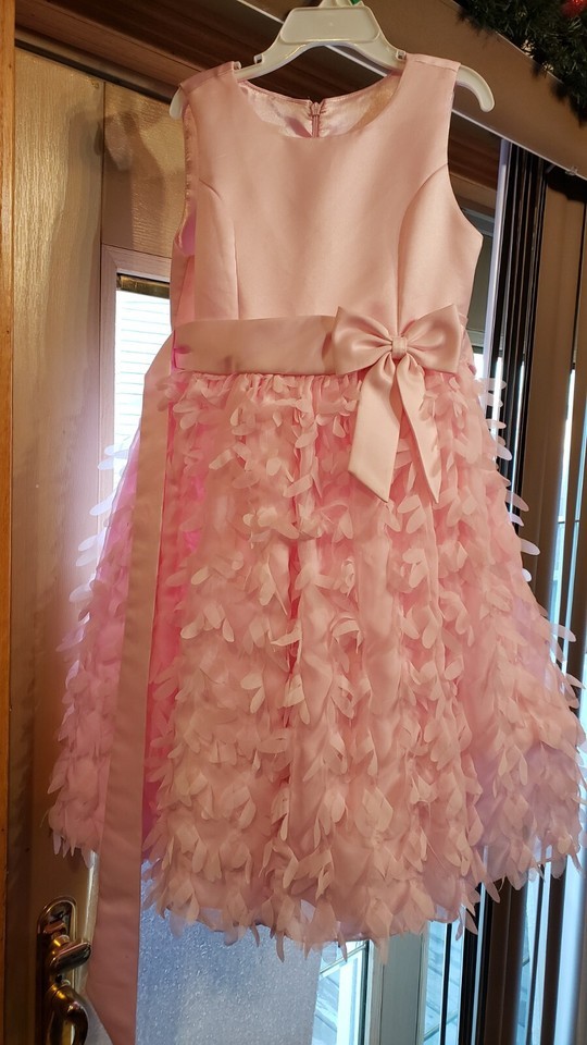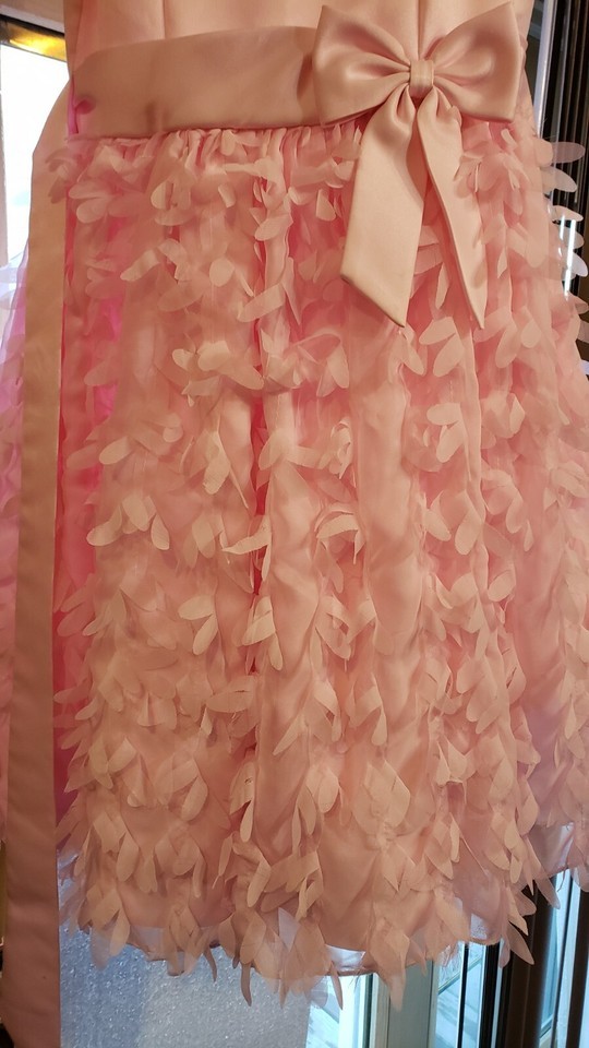 EUC Girls Formal Easter Dress Tule Lace Floral Pink Bow Satin-like sz 7 8 This is a a great Pink Easter-type Dress. My baby getting too big too fast!! She used these last season for Easter and grew out of them. Looking to give these another life for a good deal!!! Both are belted with zip back Dimensions - Overall Length of the Pink - 29-30 inches armpit to armpit - 11-12 " FREE SHIP