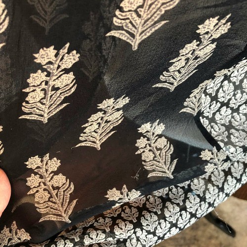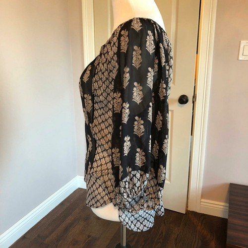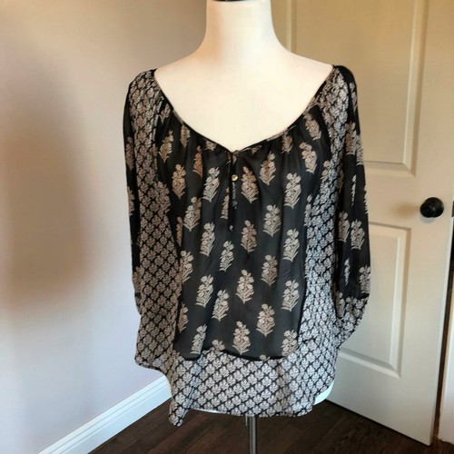 - EUC JOIE 100% Silk Chiffon Black & Gray Print Peasant Blouse SZ M