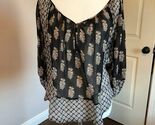 - EUC JOIE 100% Silk Chiffon Black & Gray Print Peasant Blouse SZ M