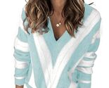 - EVALESS Women's Purple Striped V Neck Color Block Sweater Size XL