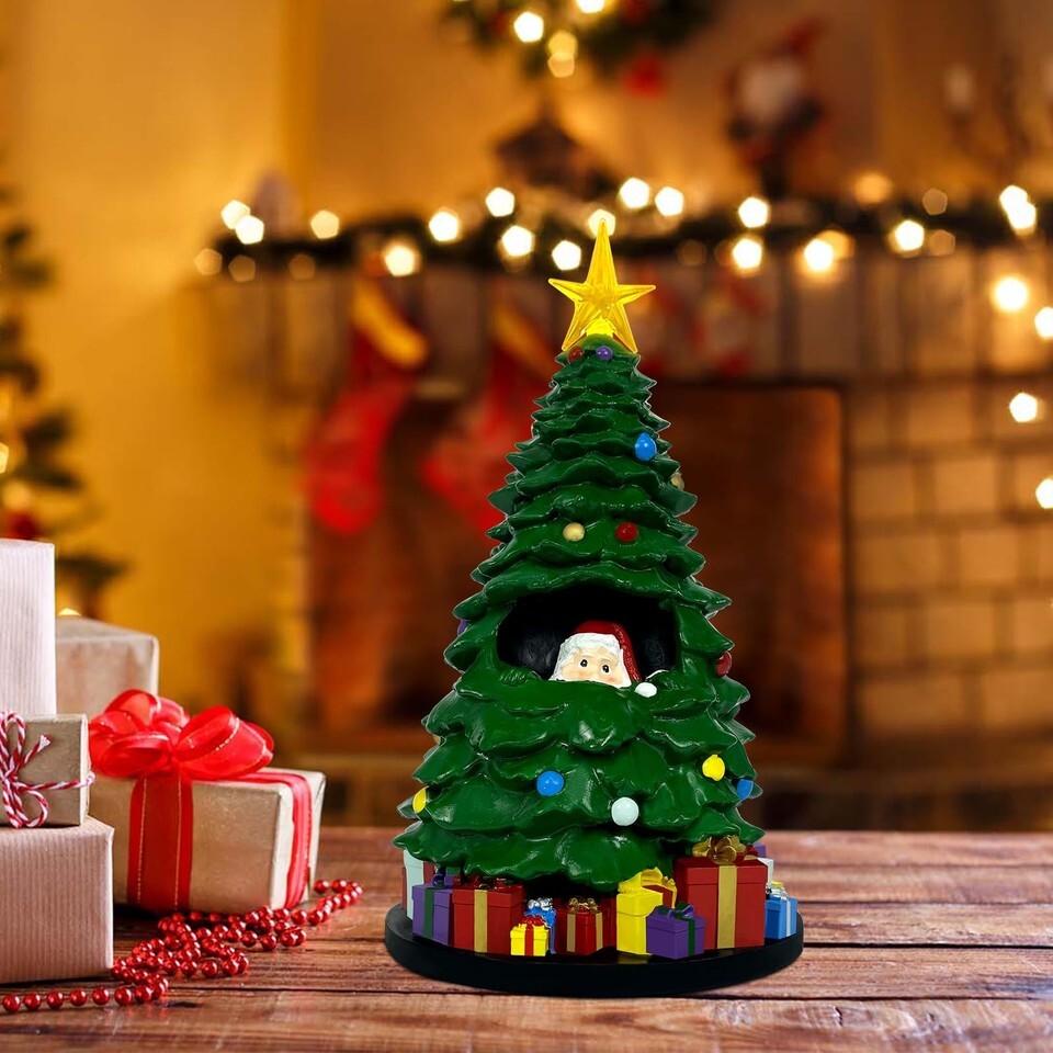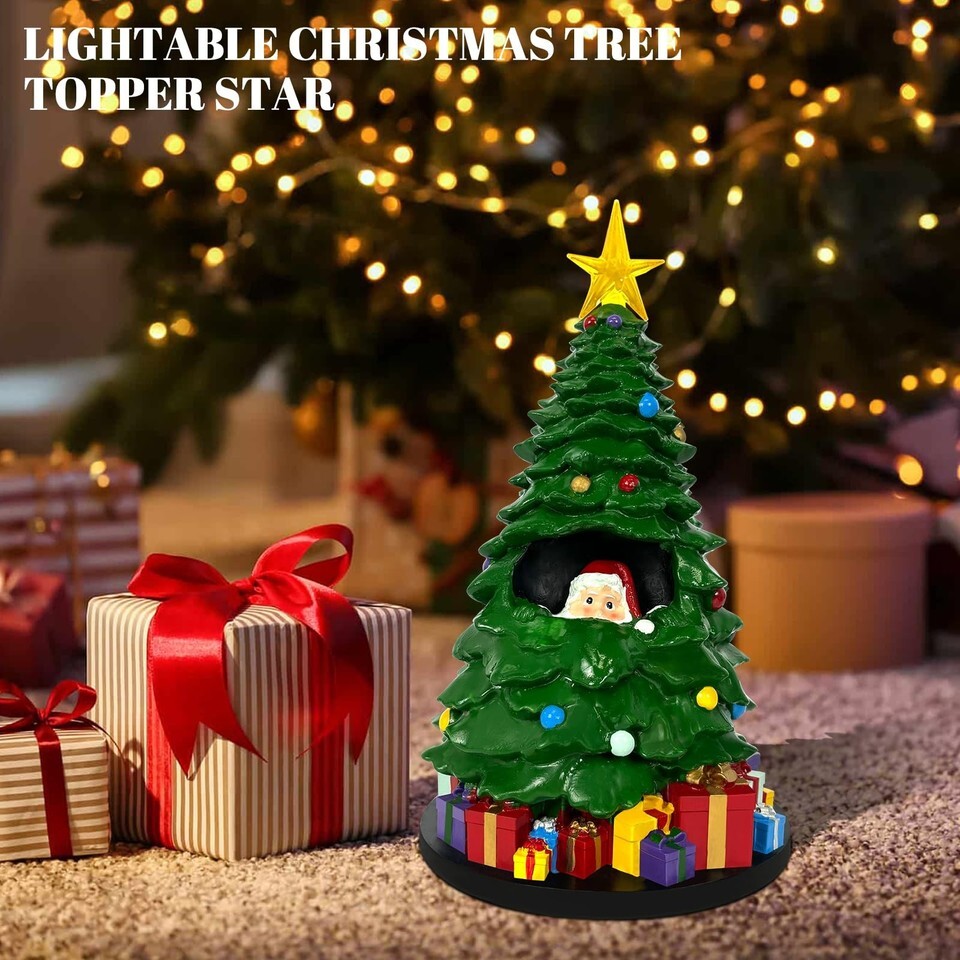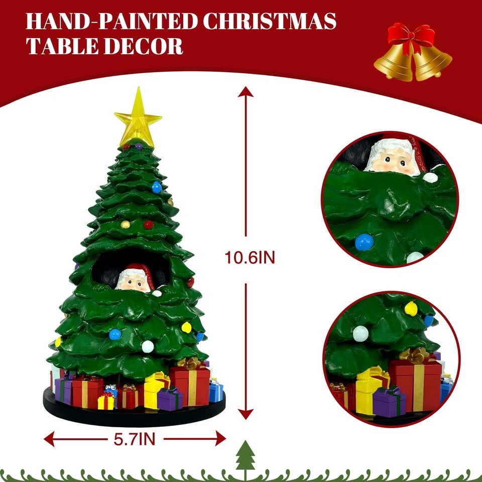 Enjoy the Christmas spirit with our Tabletop Christmas Tree. This mini tree, adorned with a hand-painted light-up star, Santa, and gifts, brings holiday cheer to any desktop. Made of durable resin, it's perfect for home or office decoration and as a thoughtful gift. Spread the joy of Christmas with this festive tabletop tree.