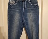 - Earl Blue Jean Capri Size 10 Flap Pockets Embroidery Denim Stretch