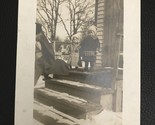 - Early 1900's B&W AZO Postcard - Snow Porch Babies
