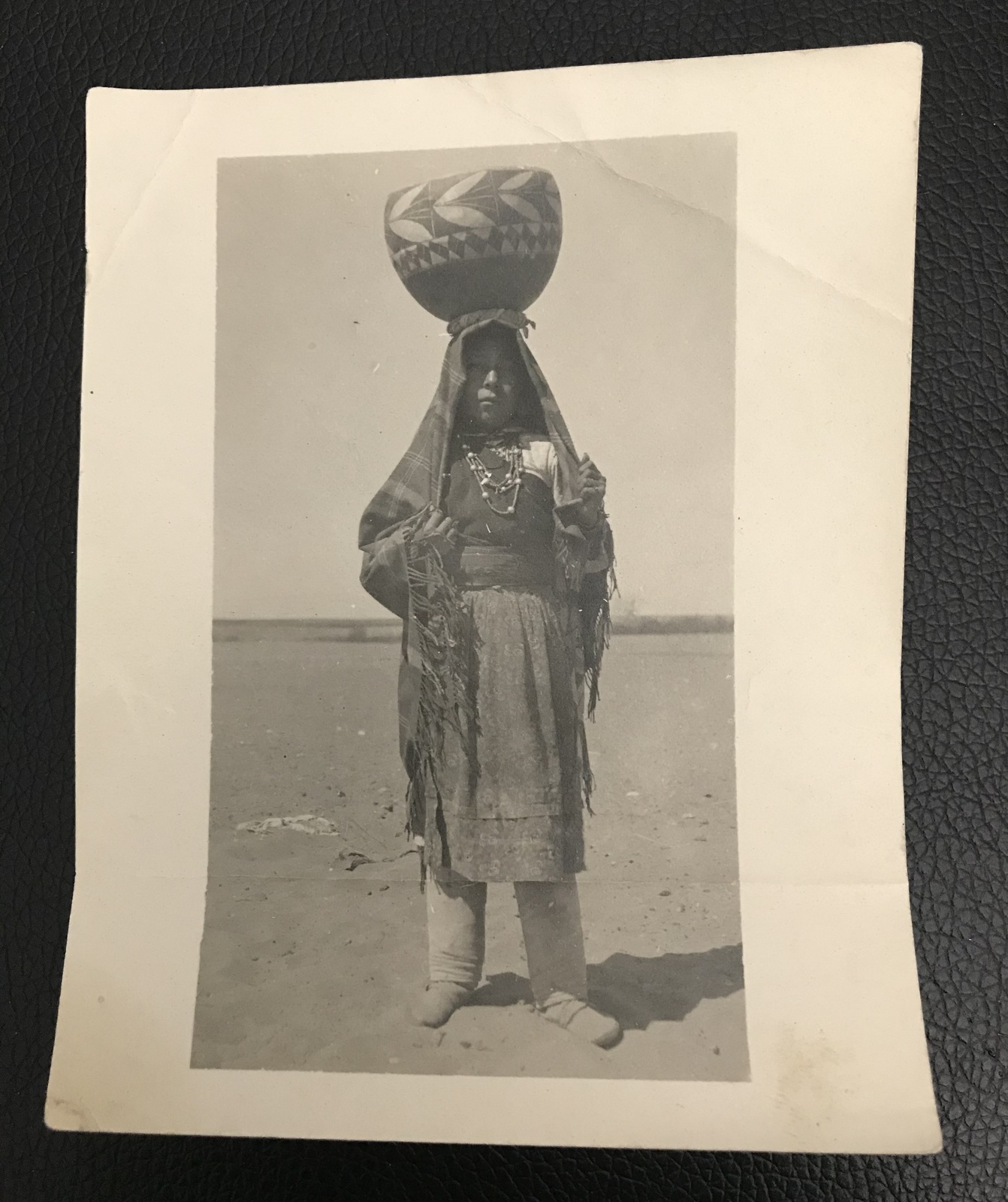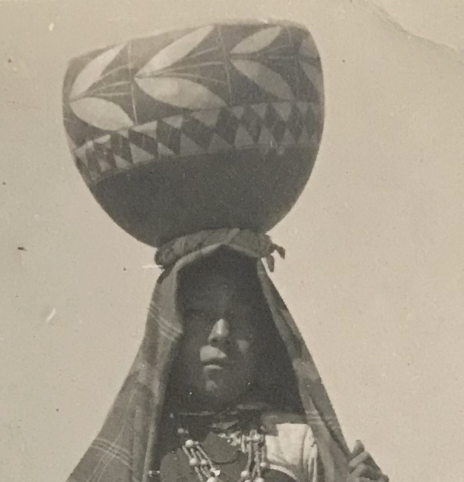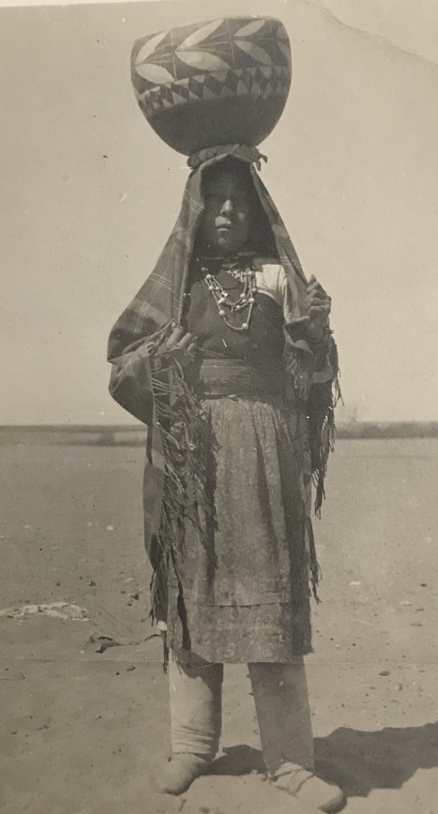 - Early 1900's B&W Photo of Native American Woman Carrying A Water Pot on Her Head
