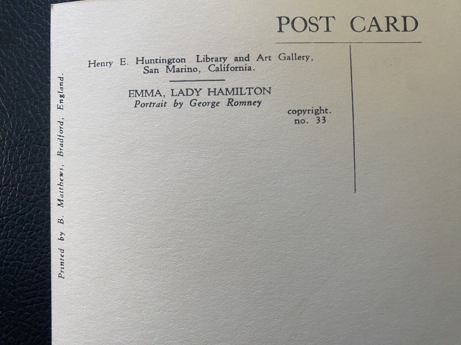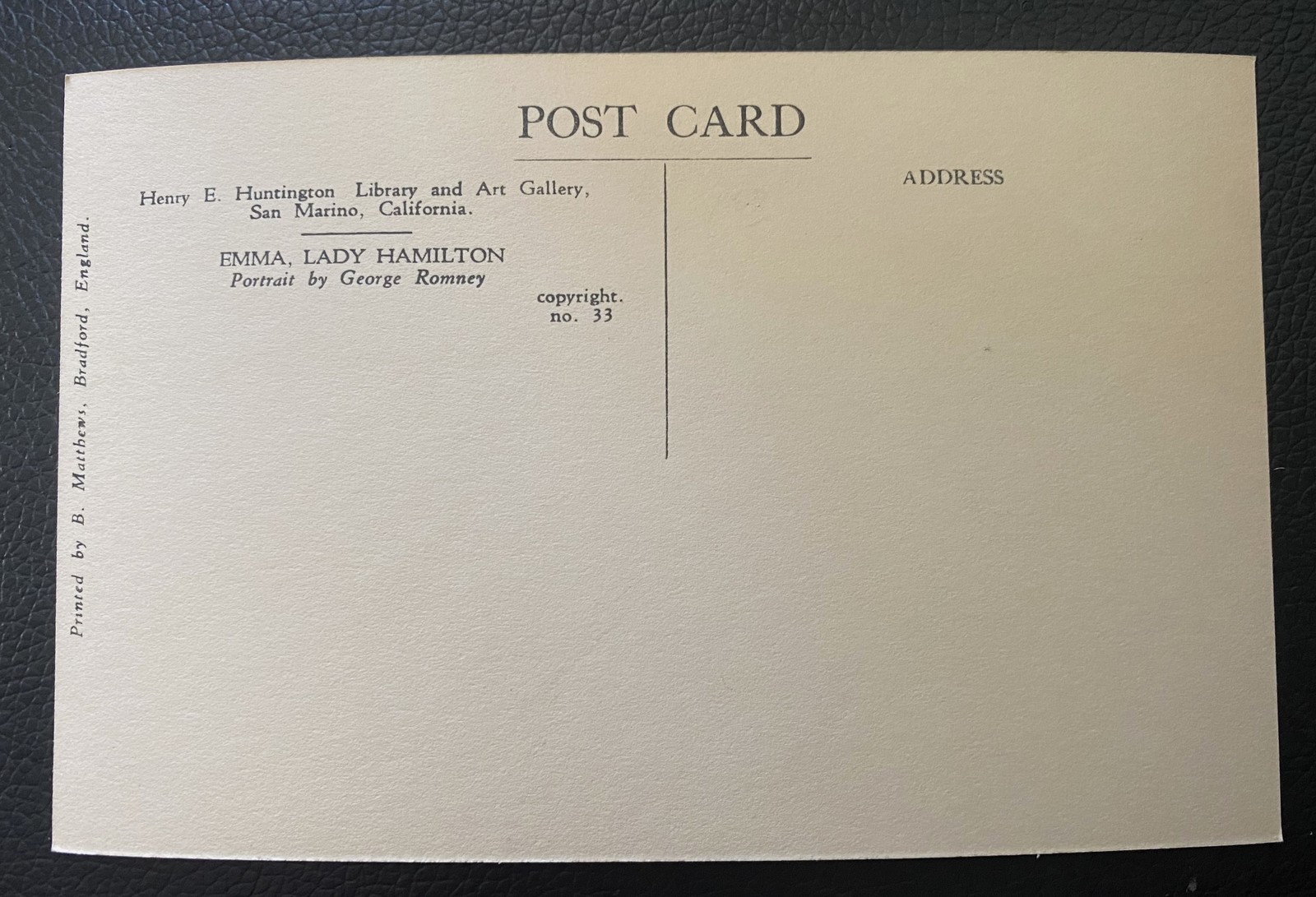 Great image of a painting of Lady Hamilton by George Romney. This RPPC (Real Picture Post Card) is very old and in perfect condition.