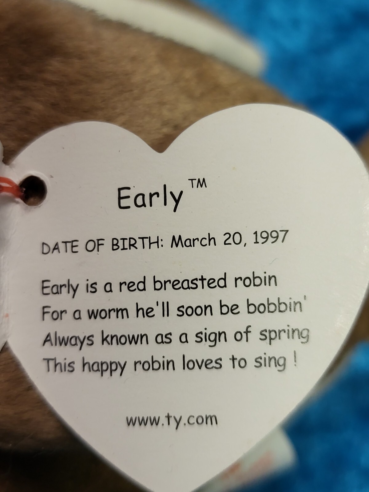 - Early the Robin Ty Beanie Baby w/Tag Errors Retired Rare 1997 1998 Excellent