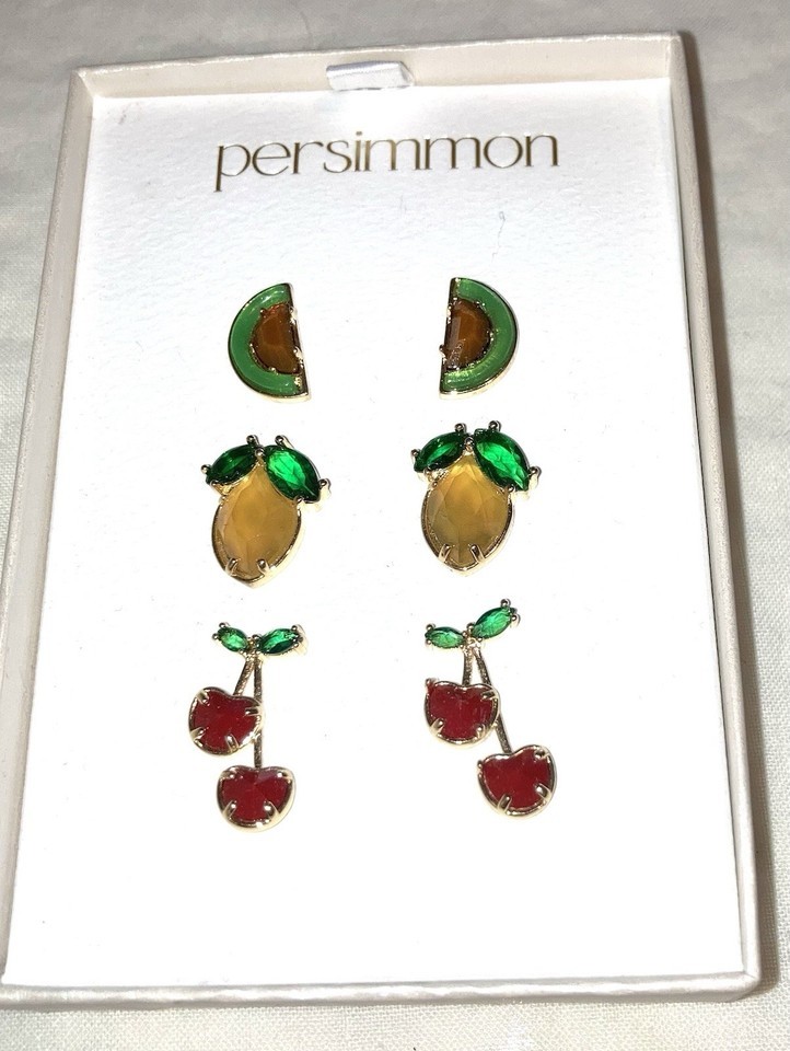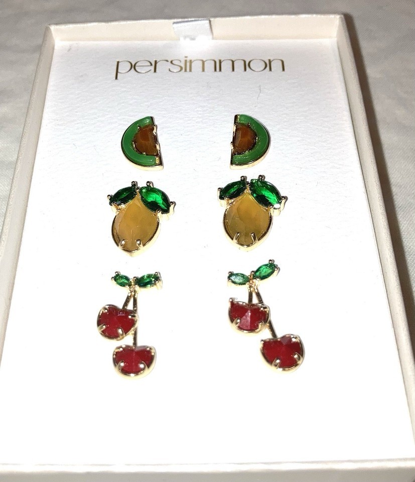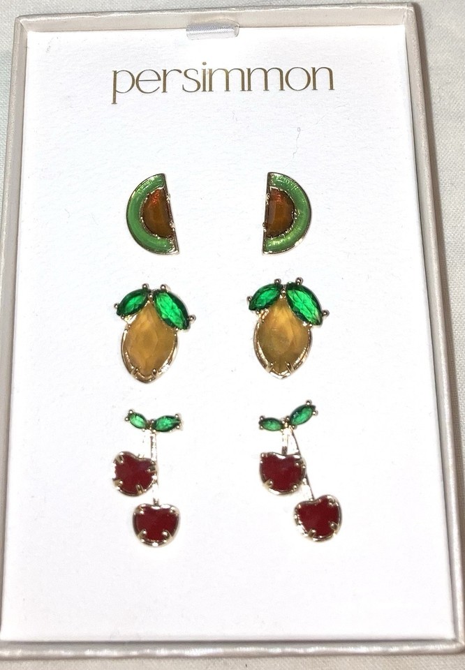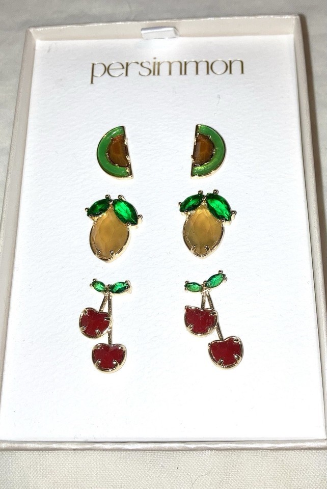 Earrings Green and Red Fruit by Persimmon Boxed set New