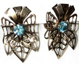 Earrings SCREW BACK Vintage Gold Tone Blue stone circa 1960