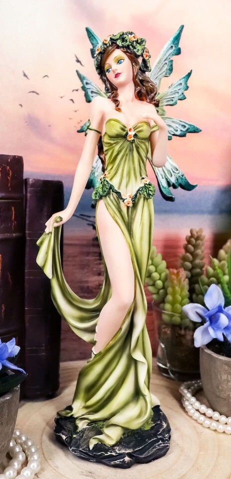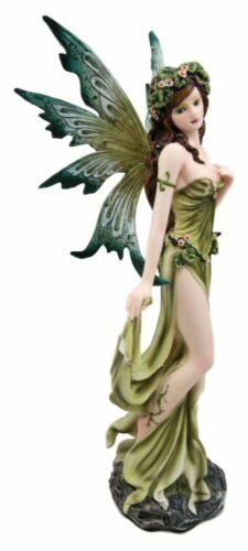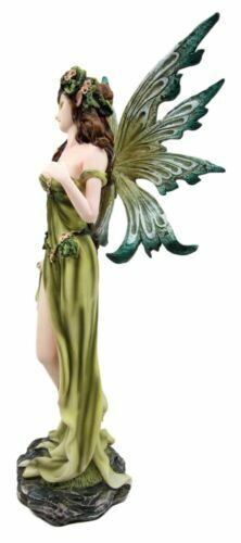 ? Beautifully dressed in green gown, this fairy represents the flora and fauna of the earth. She features expert and beautiful sculpting and painting of the face and excellent details of the hair and overall body.