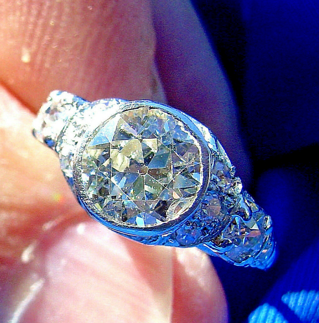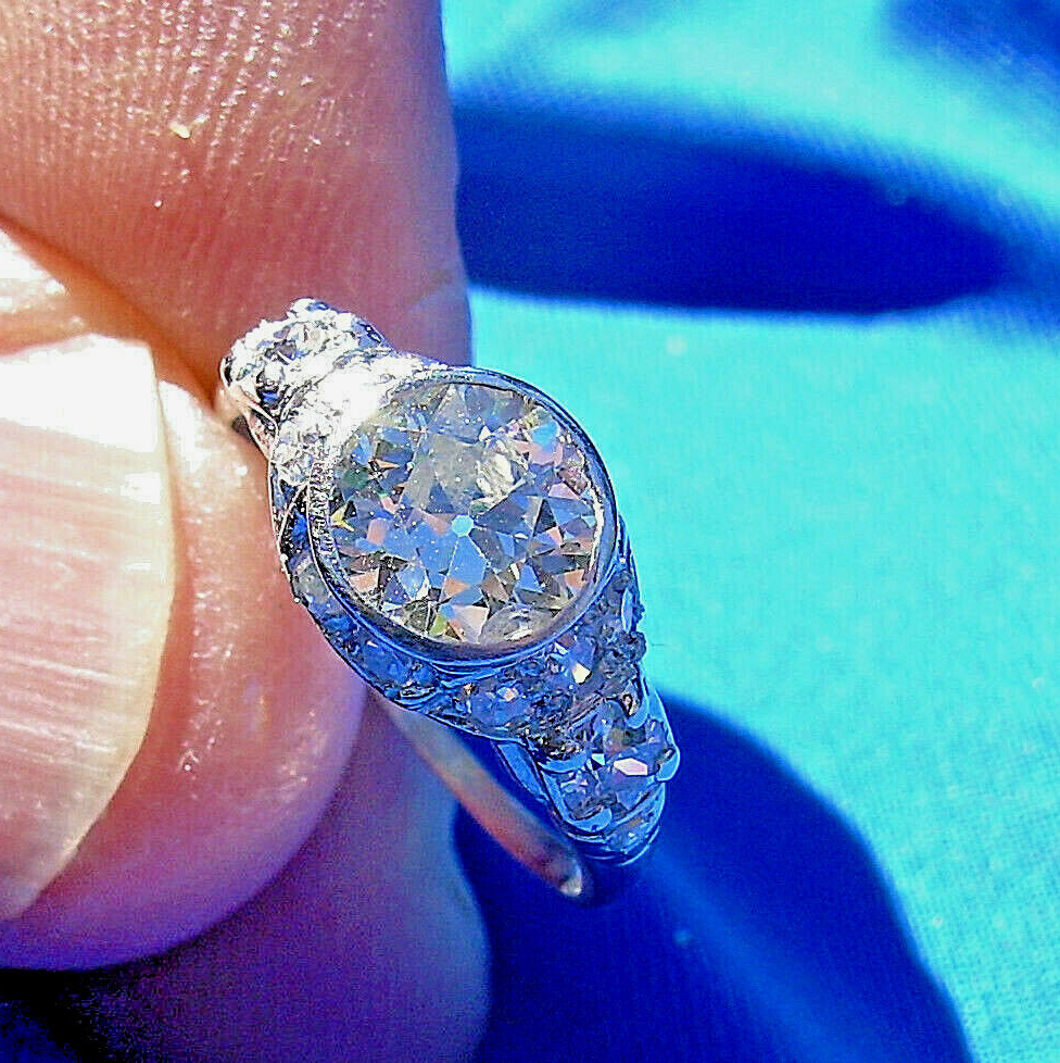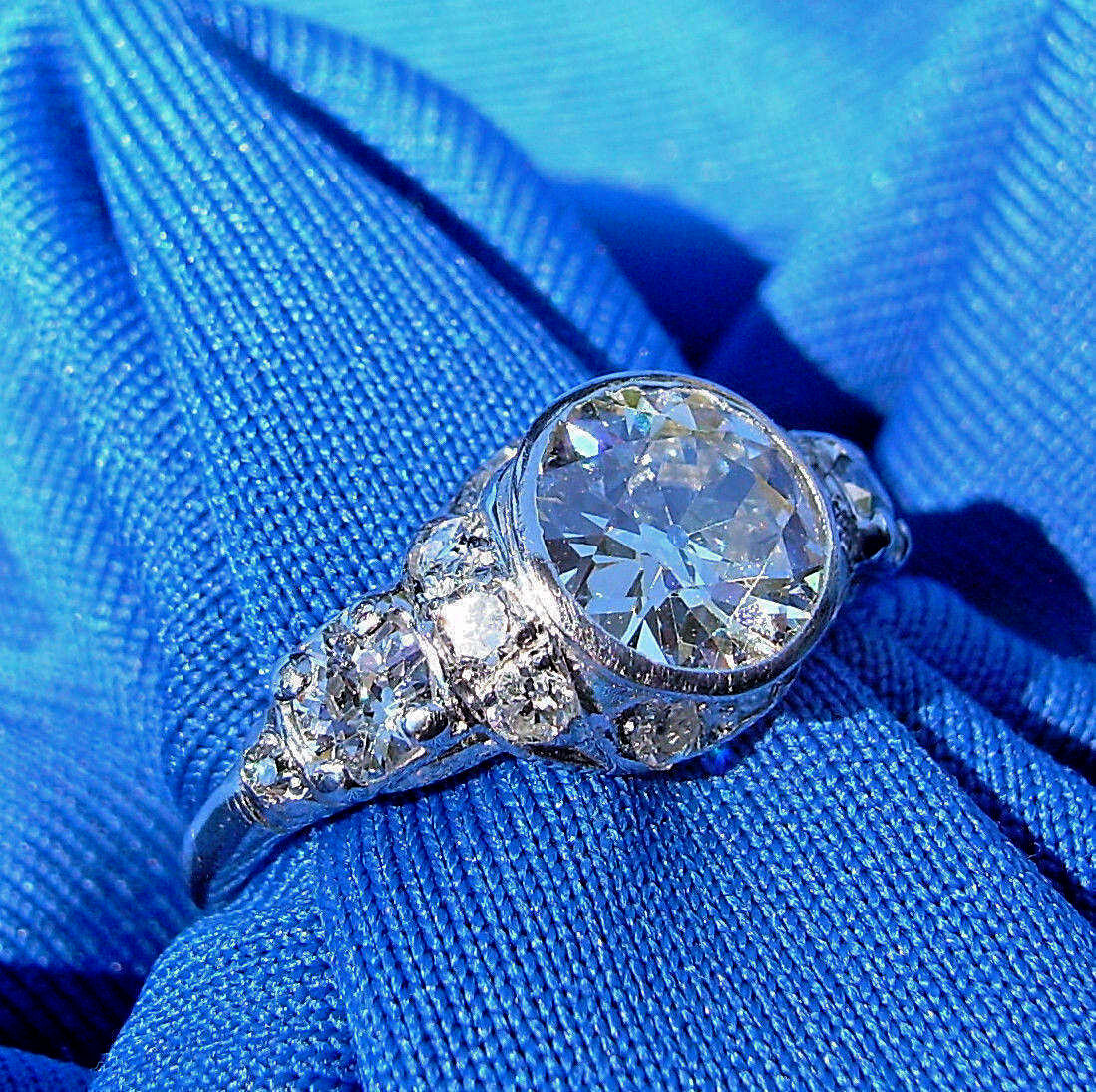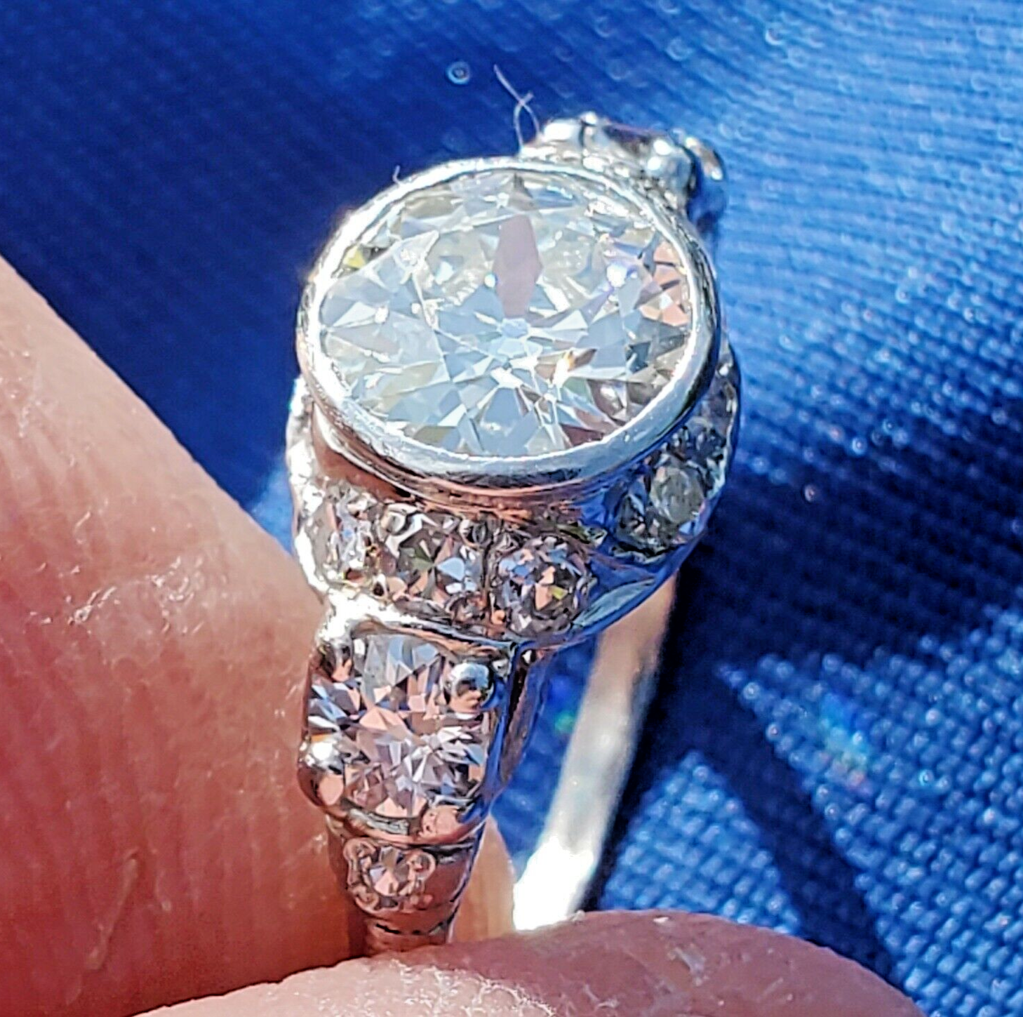 Earth Mined DIAMOND Deco Engagement Ring 1.58 carat Vintage Platinum Solitaire 5