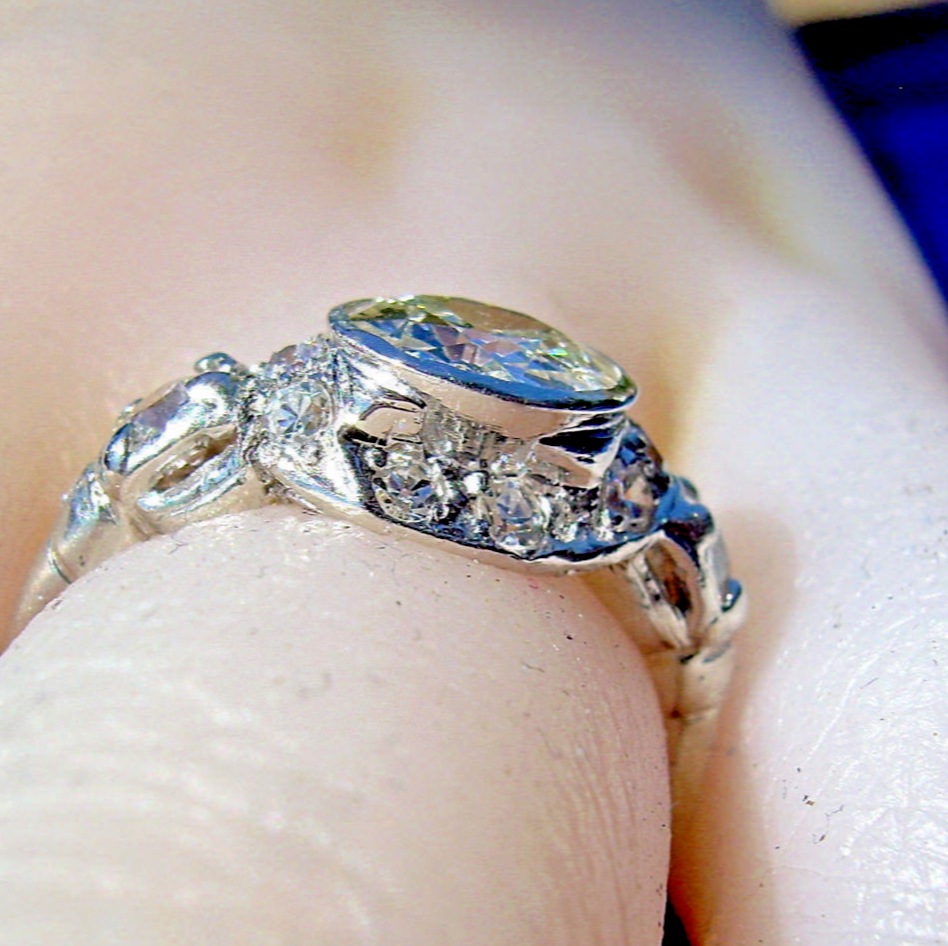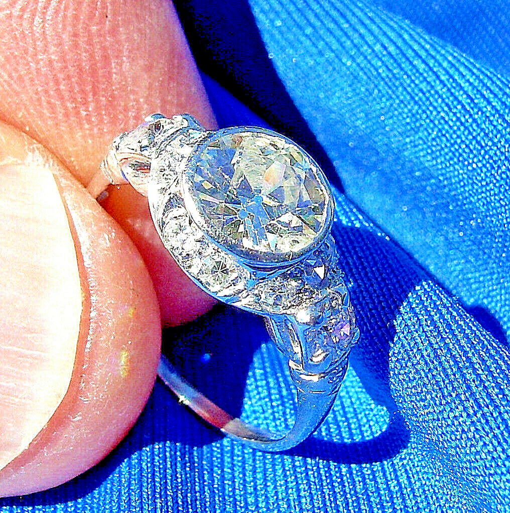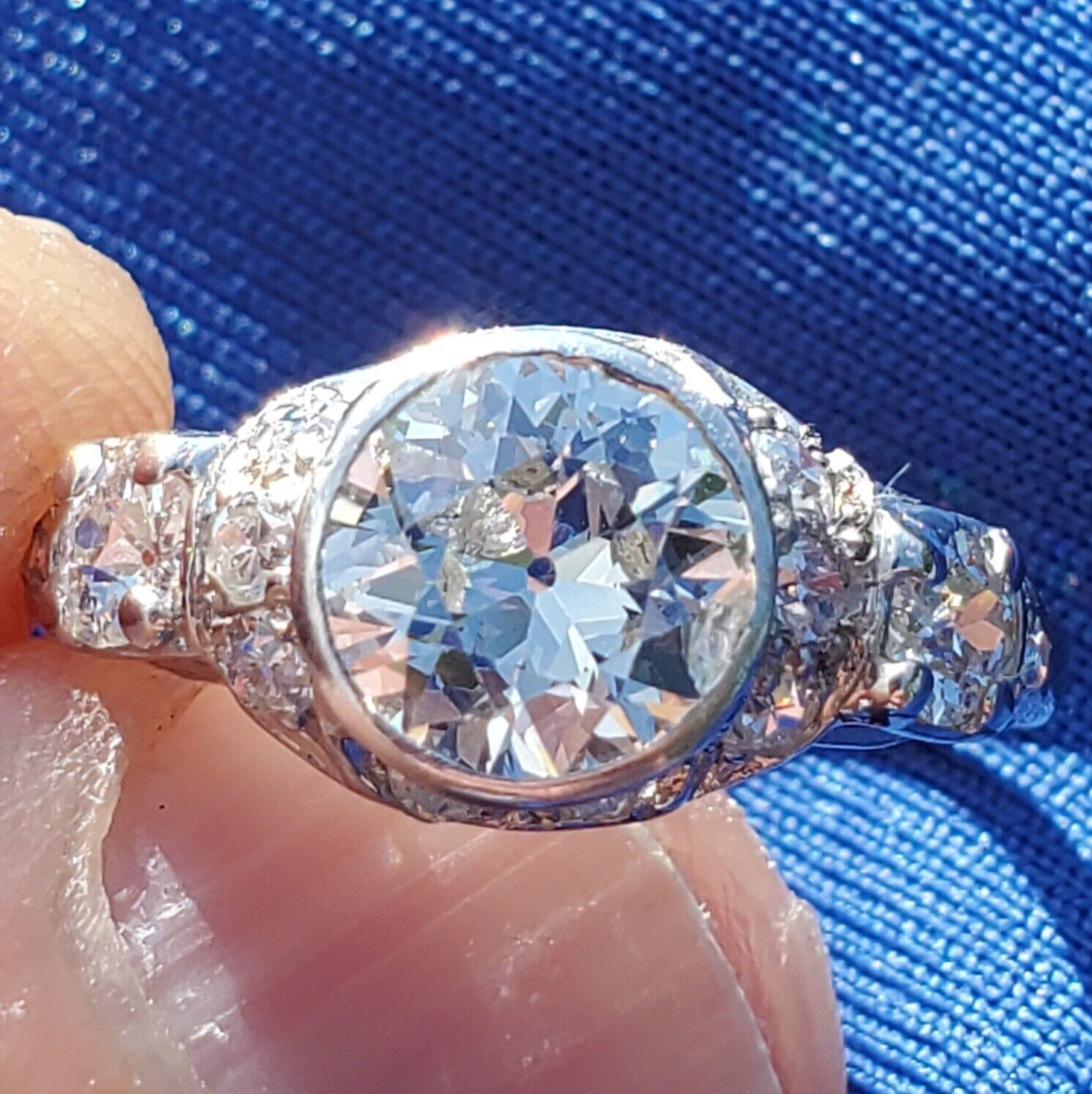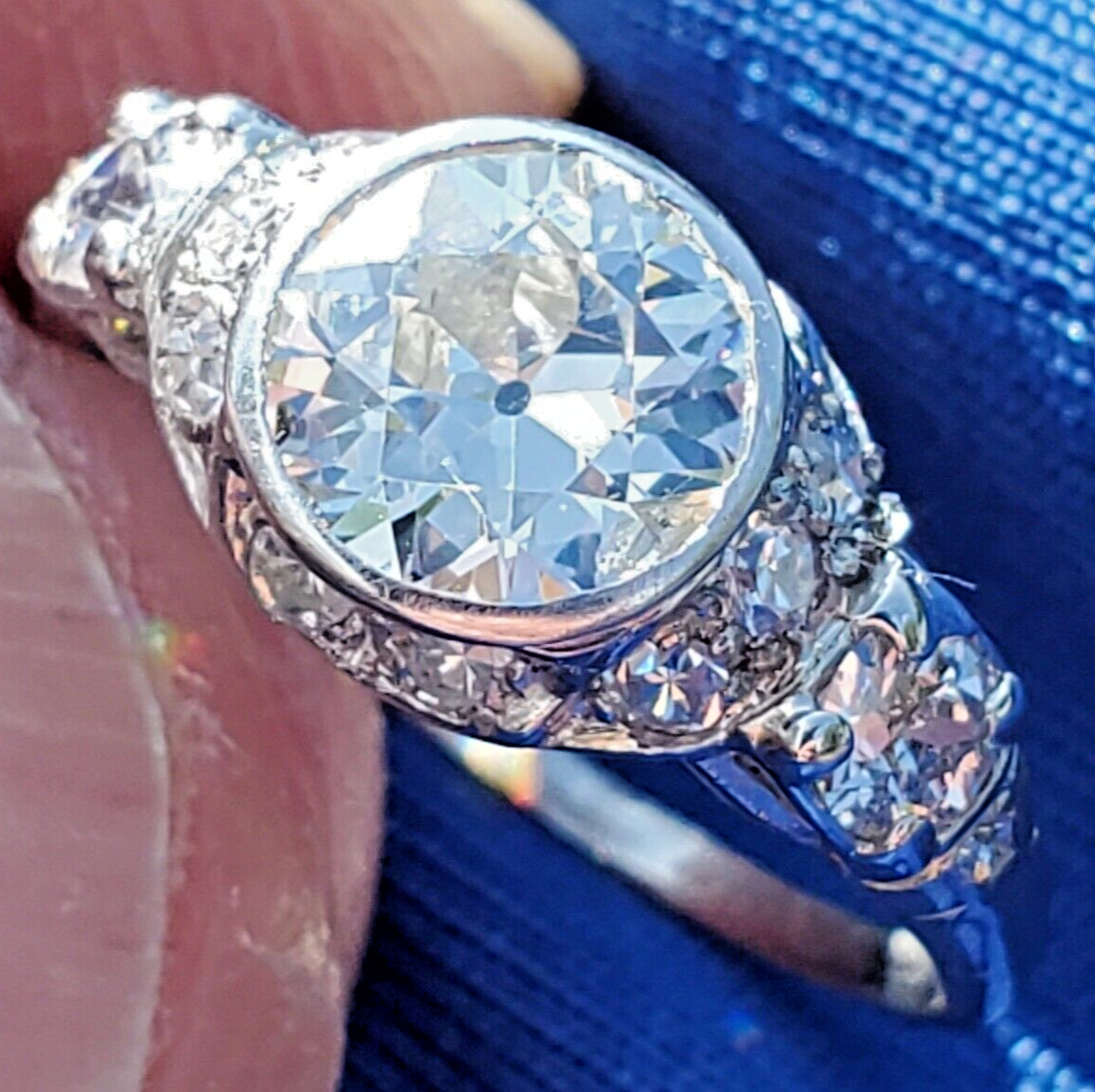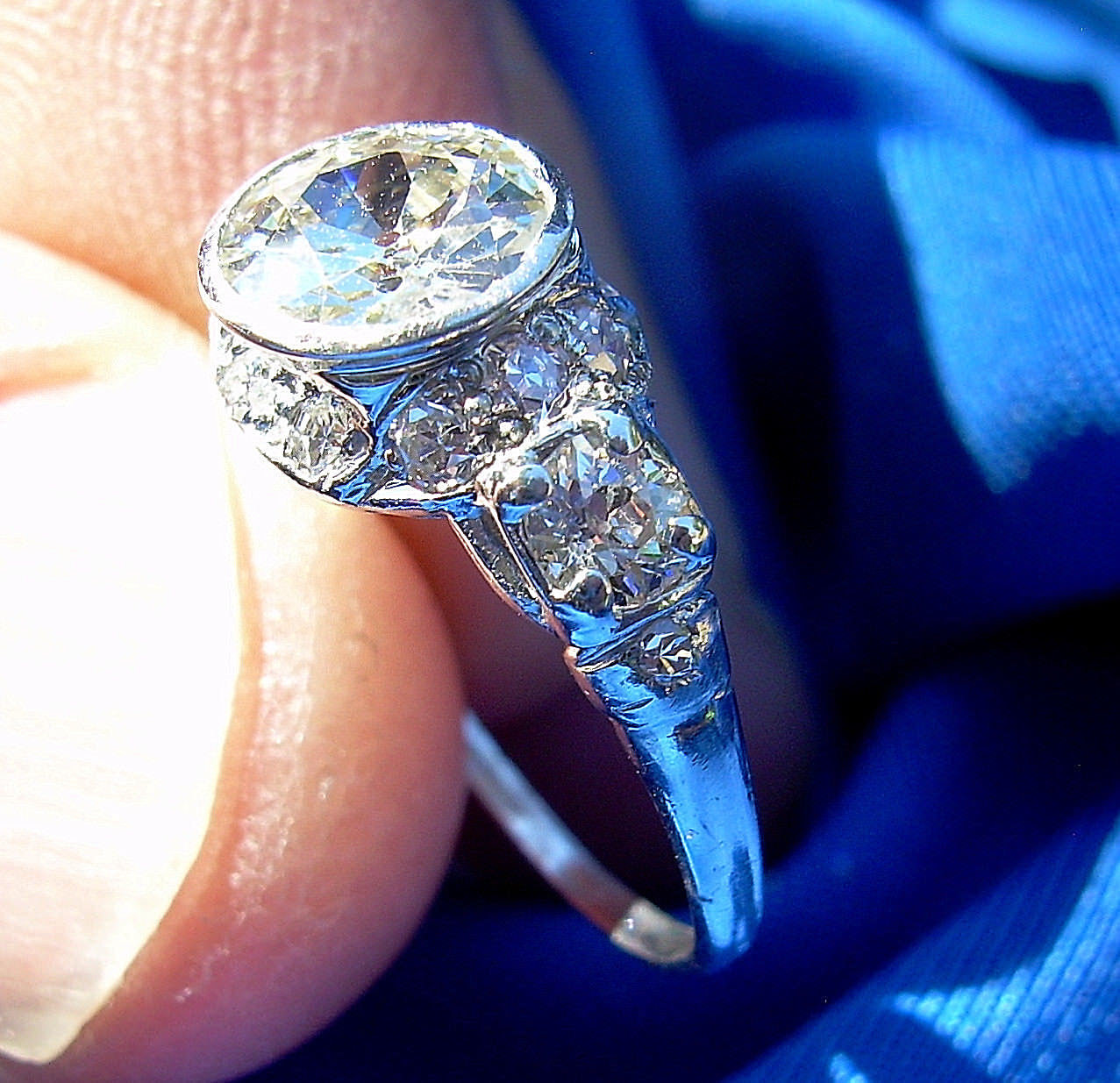 Earth Mined DIAMOND Deco Engagement Ring 1.58 carat Vintage Platinum Solitaire 5