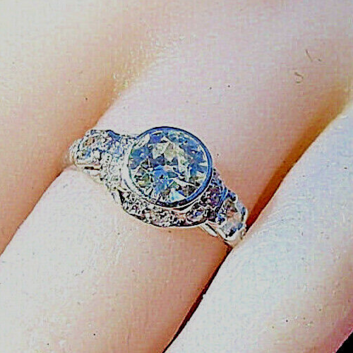 ELEGANT NATURAL DIAMOND PLATINUM GATSBY ERA SOLITAIRE.