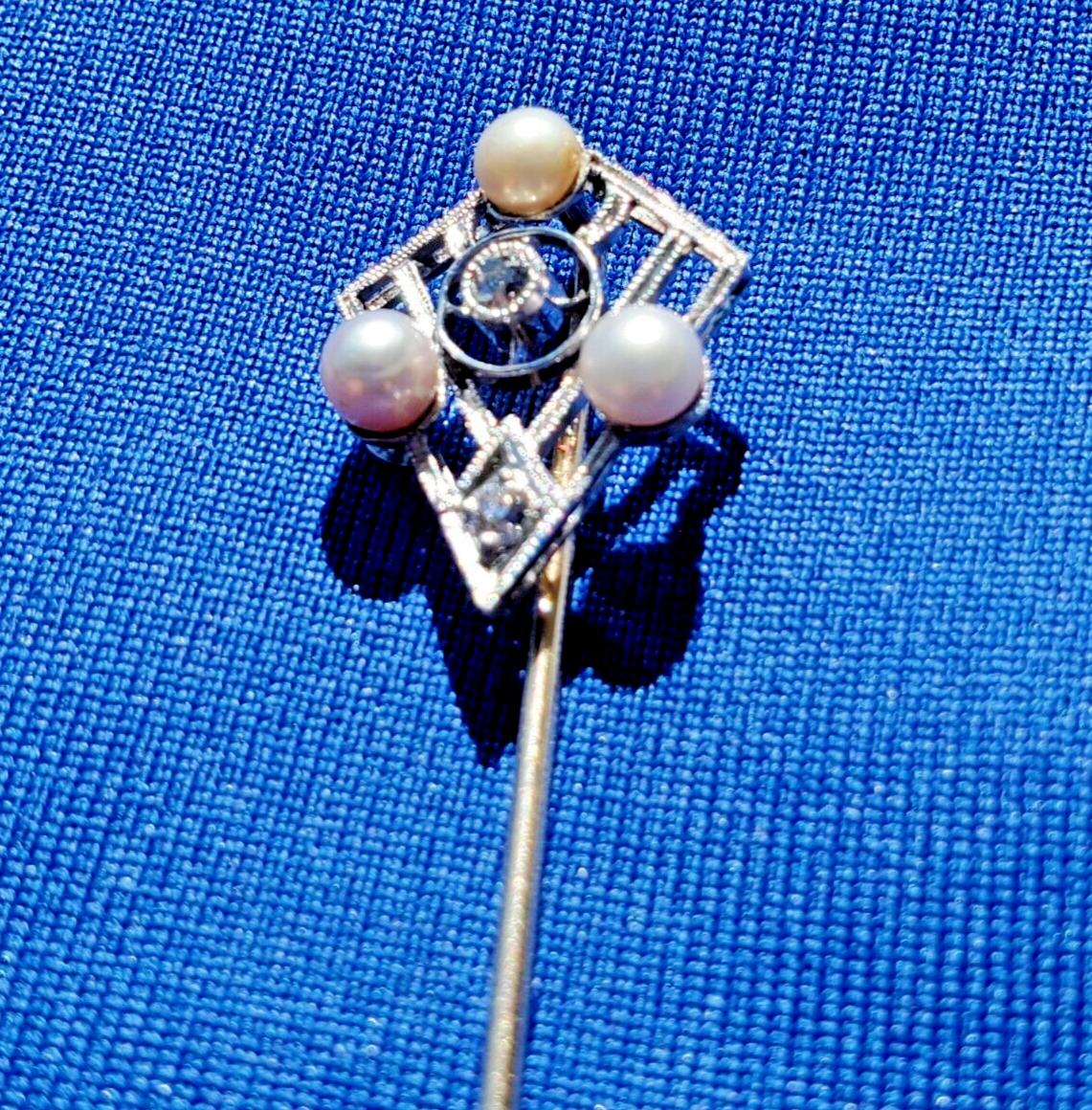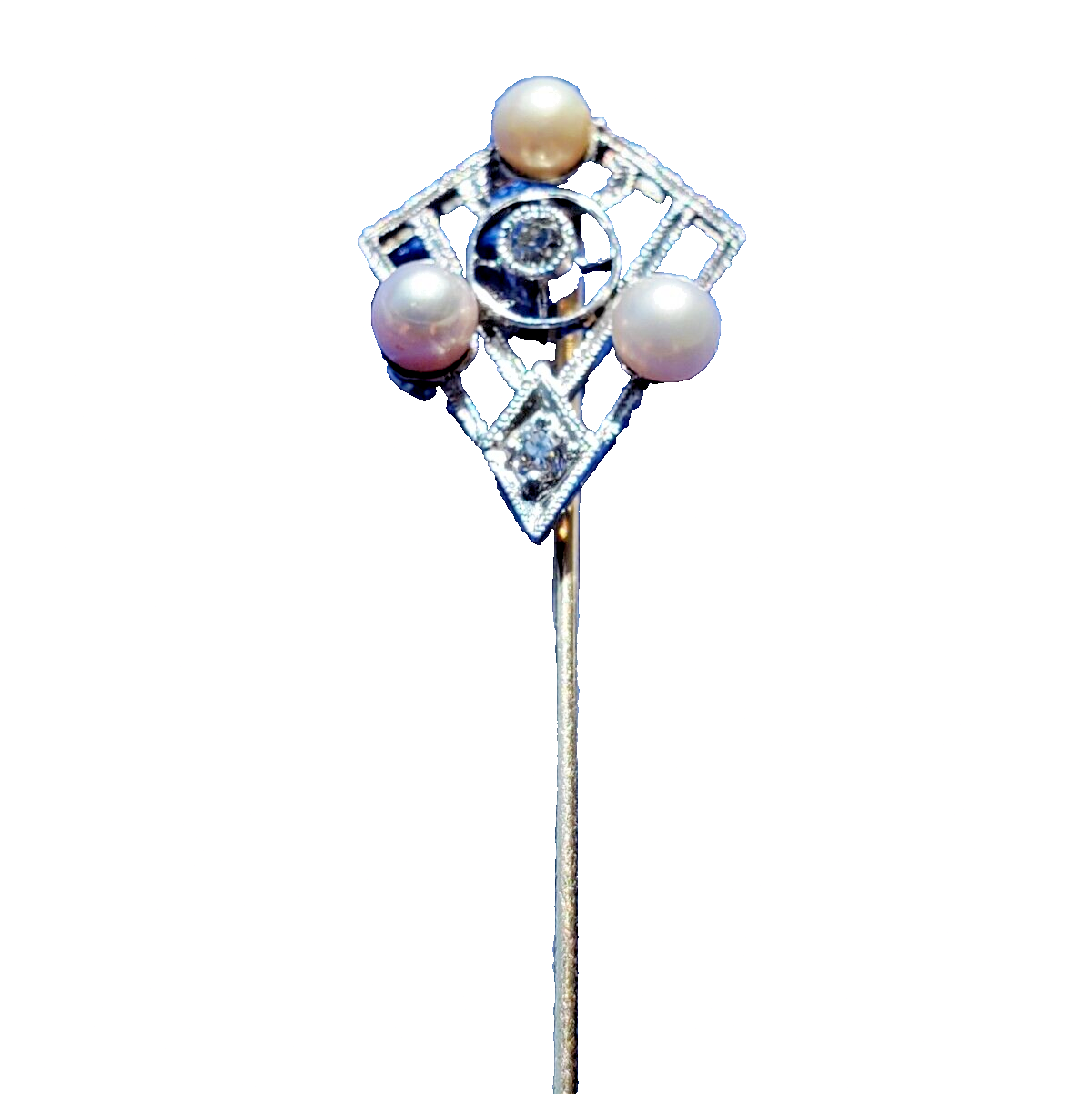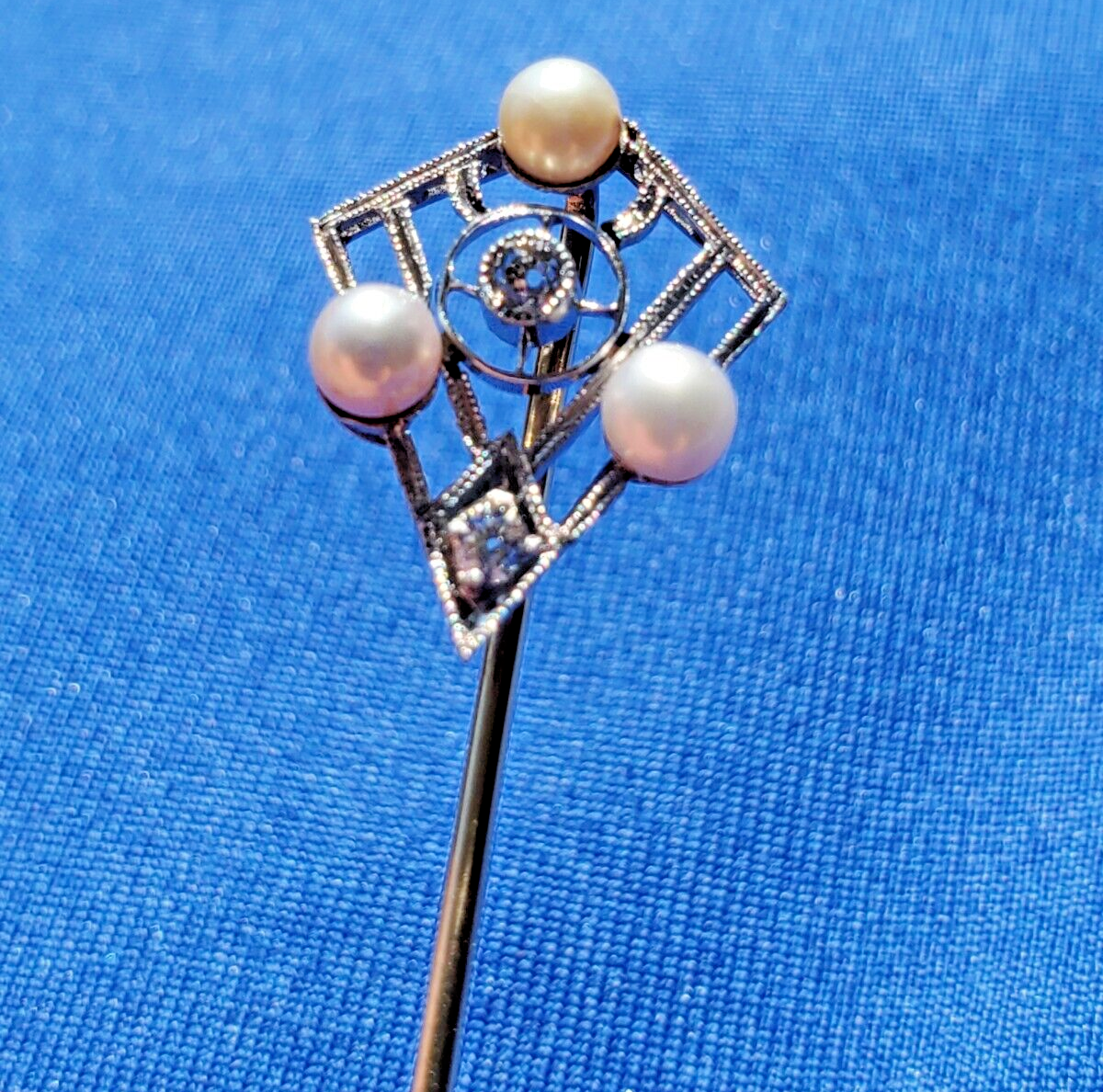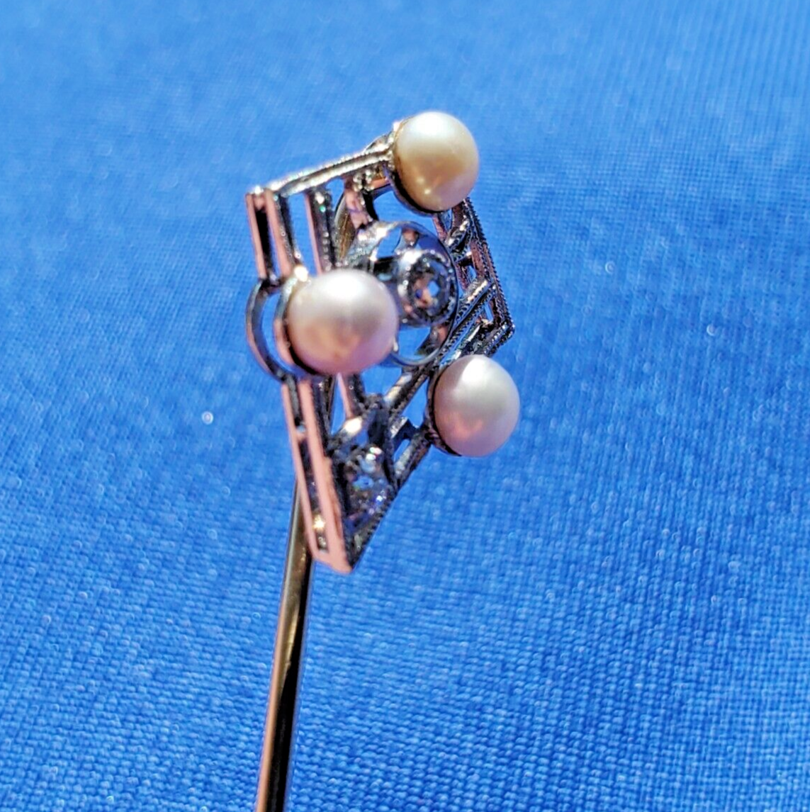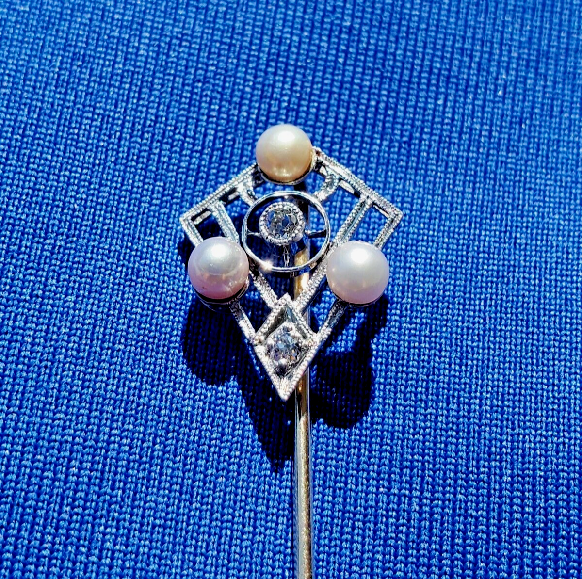 - Earth mind Diamond Art Deco Gatsby era Pin Antique Pearl Filigree 14k White Gold