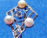 Earth mind Diamond Art Deco Gatsby era Pin Antique Pearl Filigree 14k White Gold