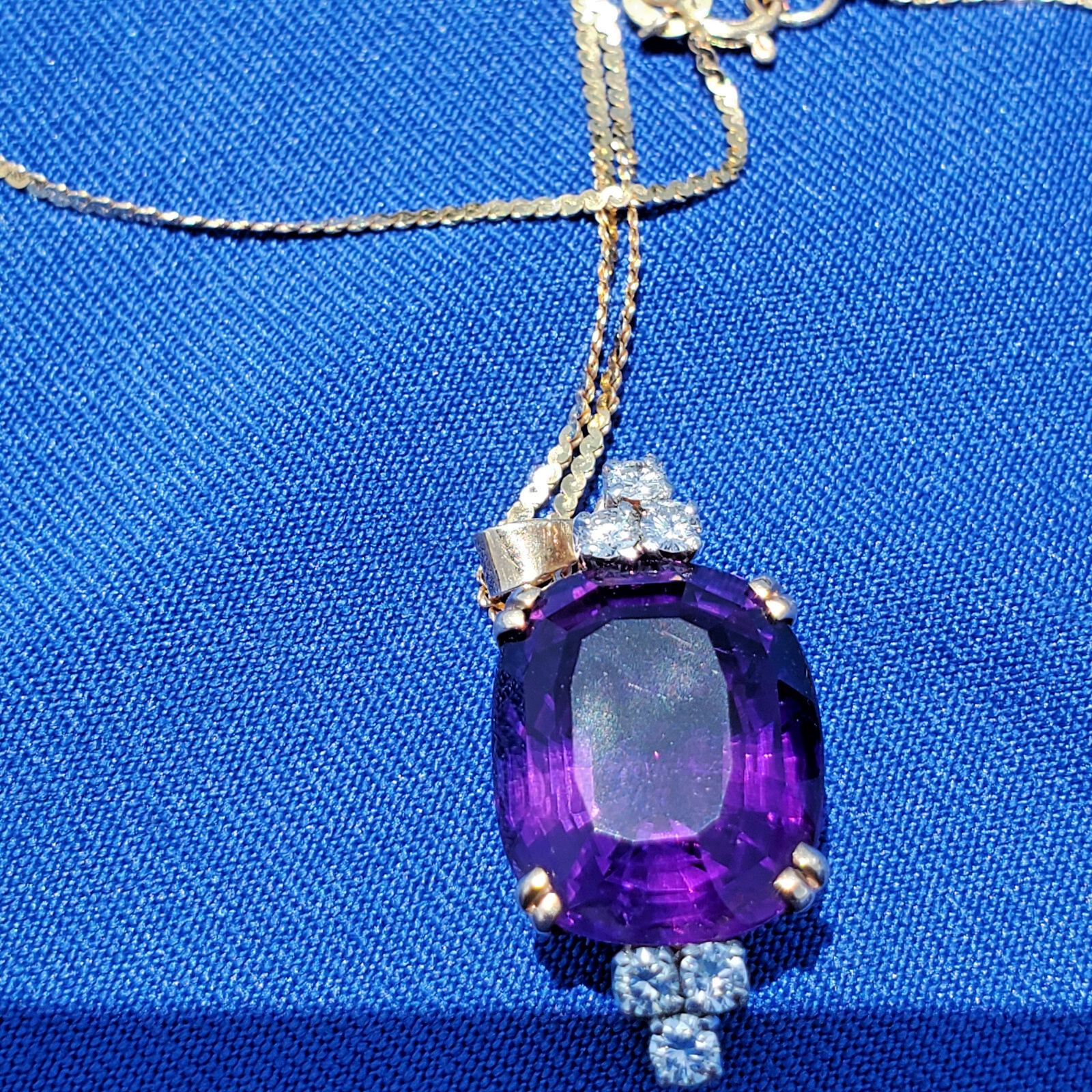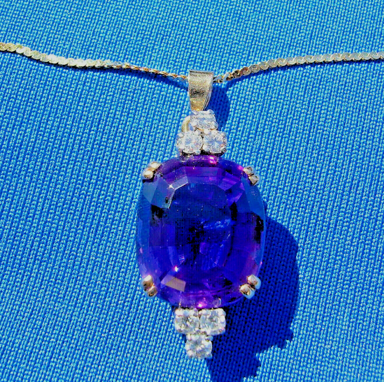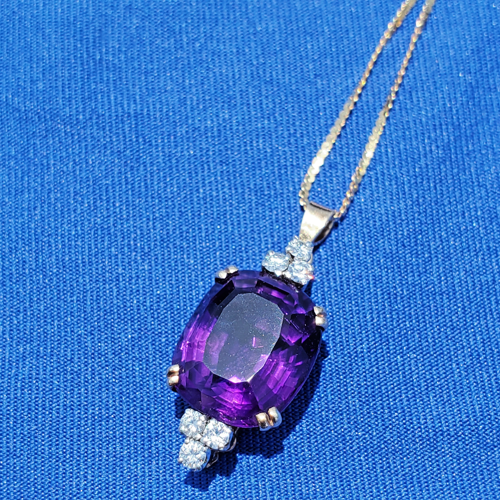 - Earth mined Amethyst Diamond Deco Gatsby style Necklaces 14k Chain 20" inch