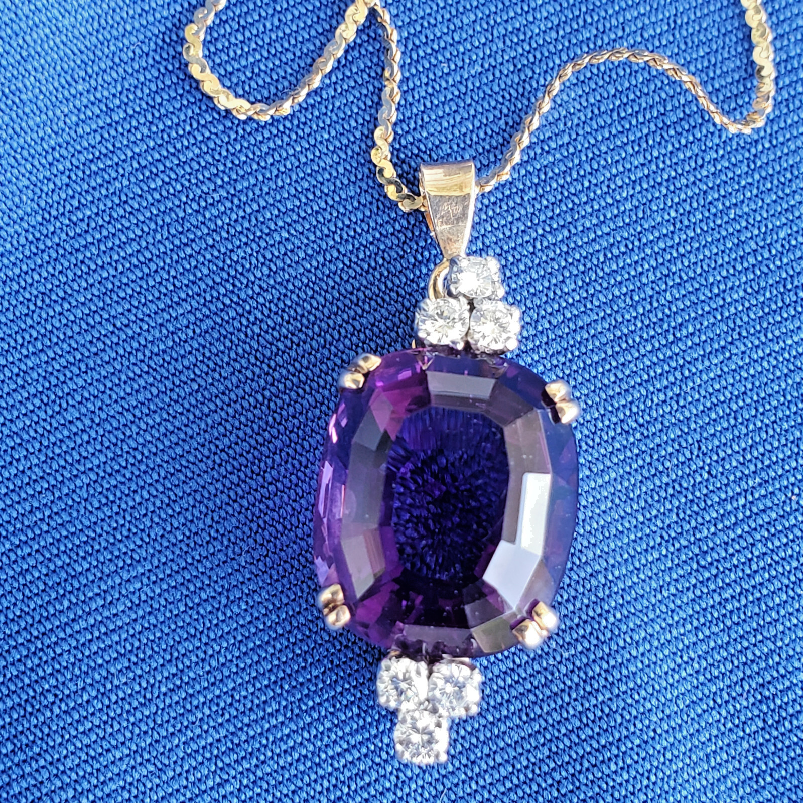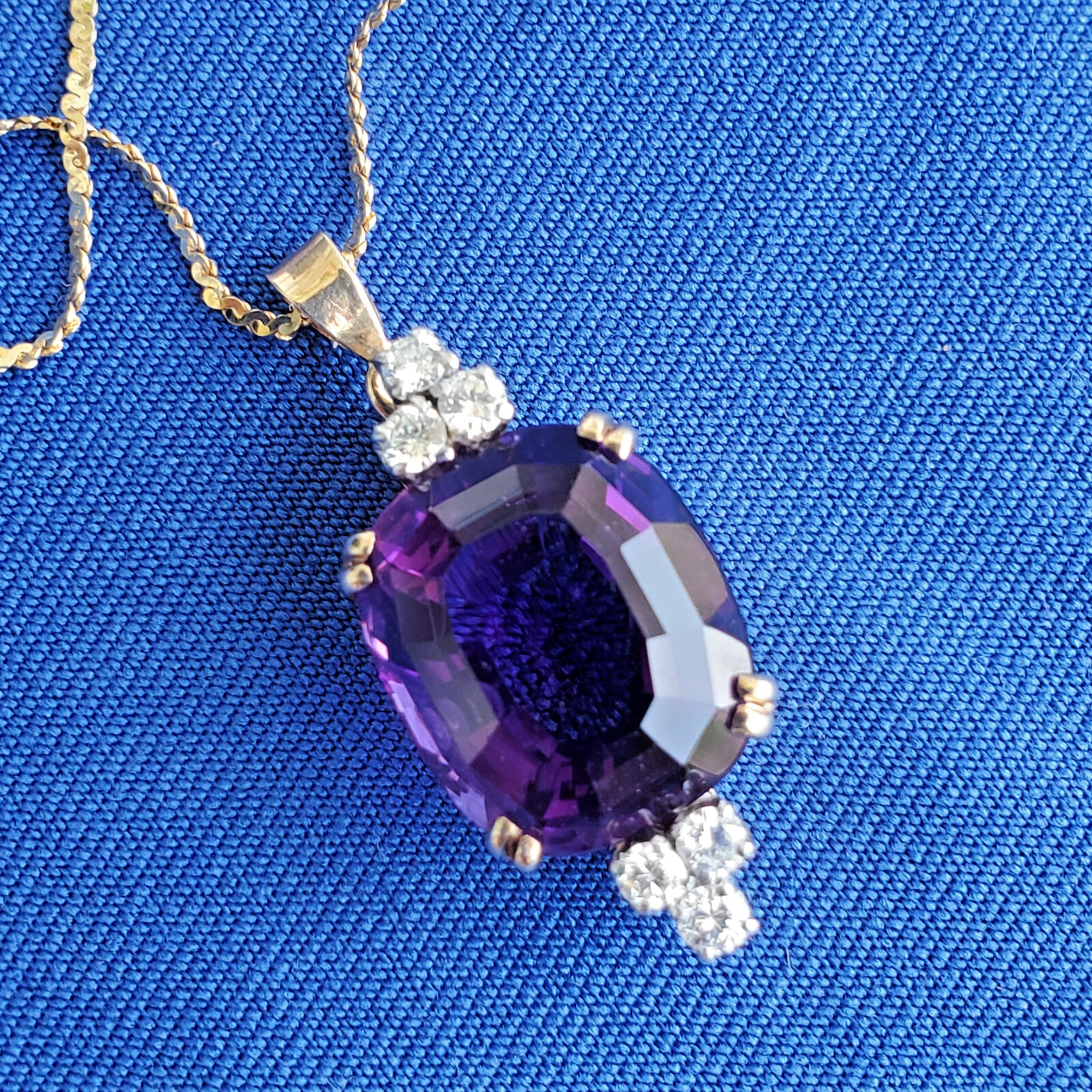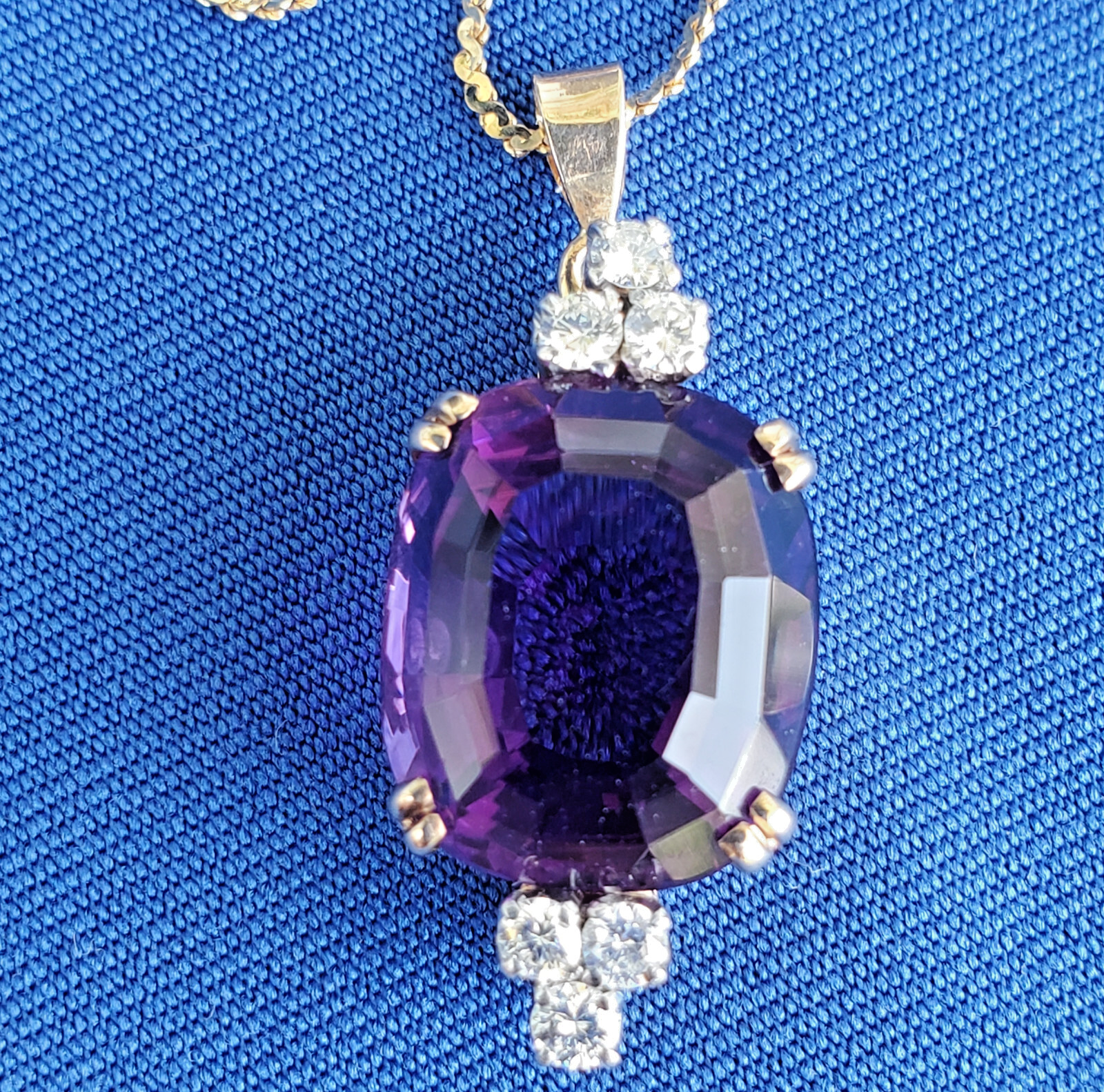 - Earth mined Amethyst Diamond Deco Gatsby style Necklaces 14k Chain 20" inch