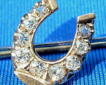 - Earth mined Diamond Antique Cushion cut Deco Horseshoe Brooch Equestrian Pin 14k