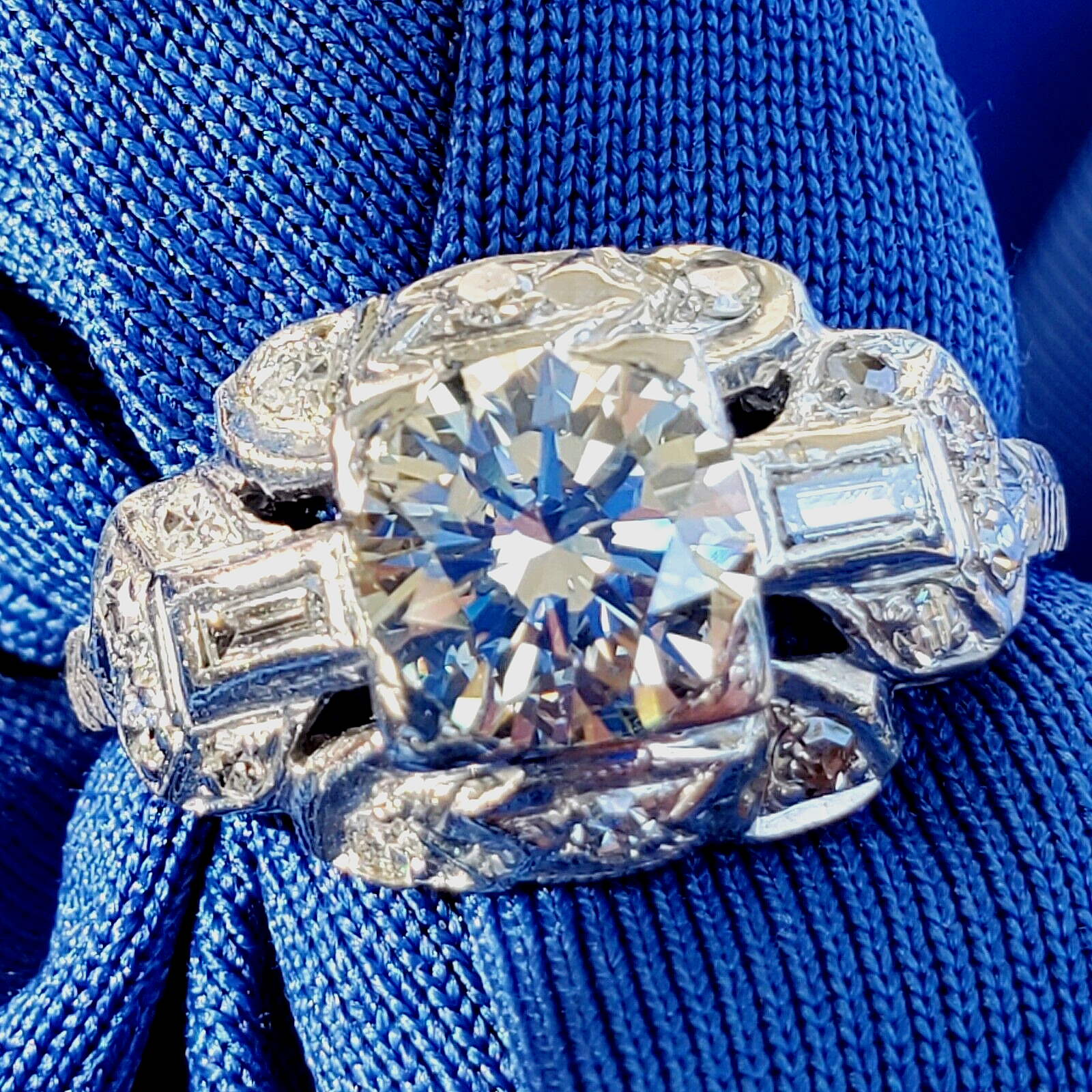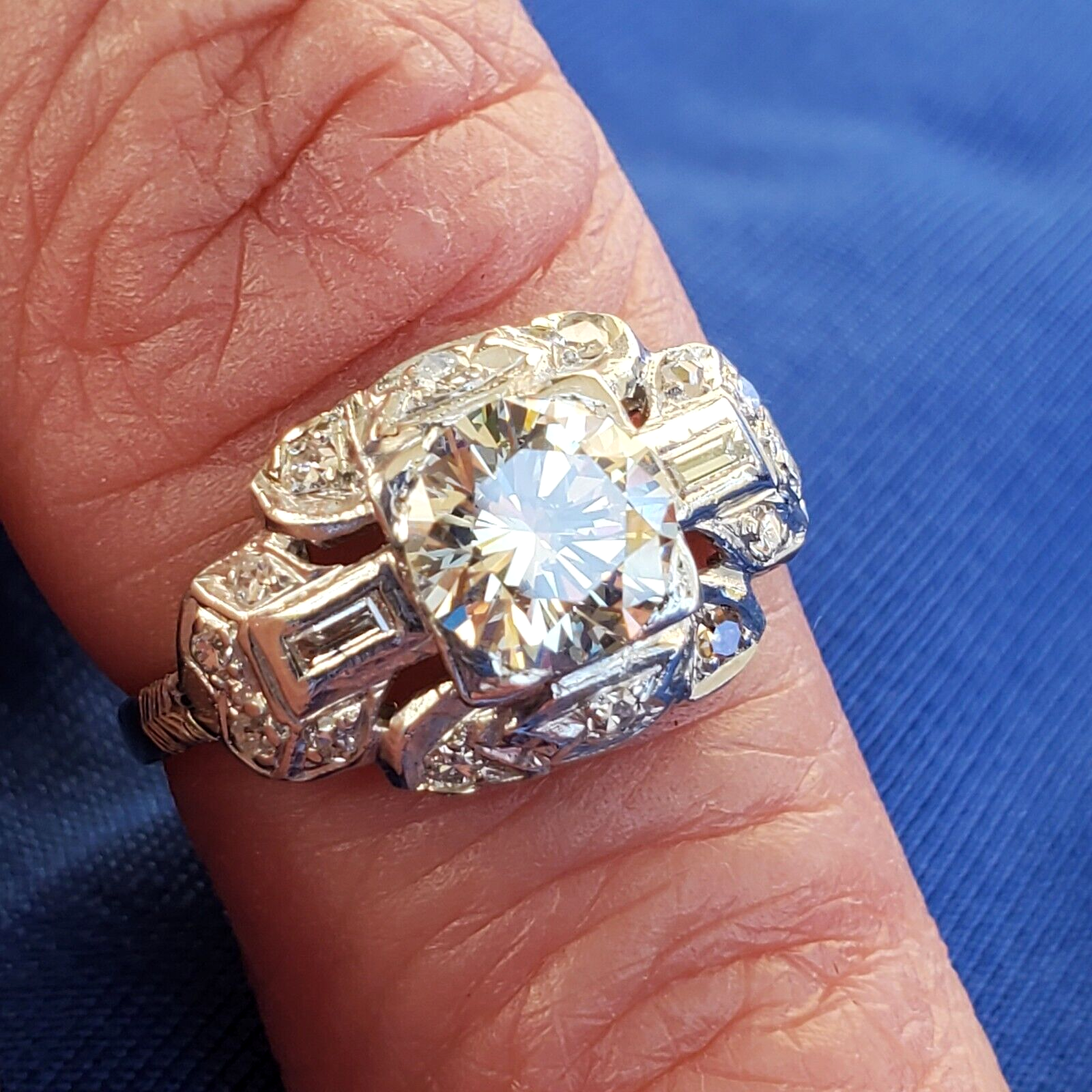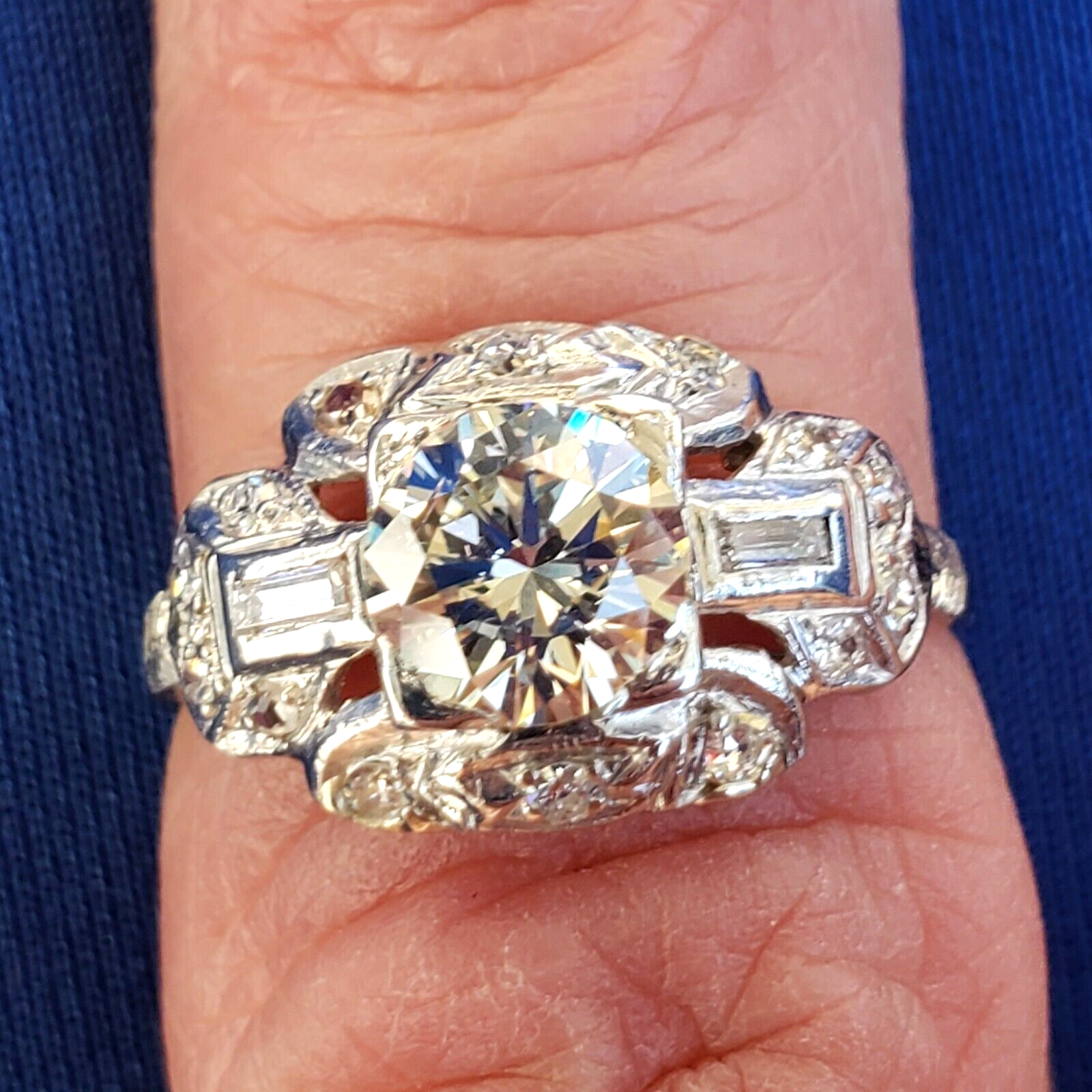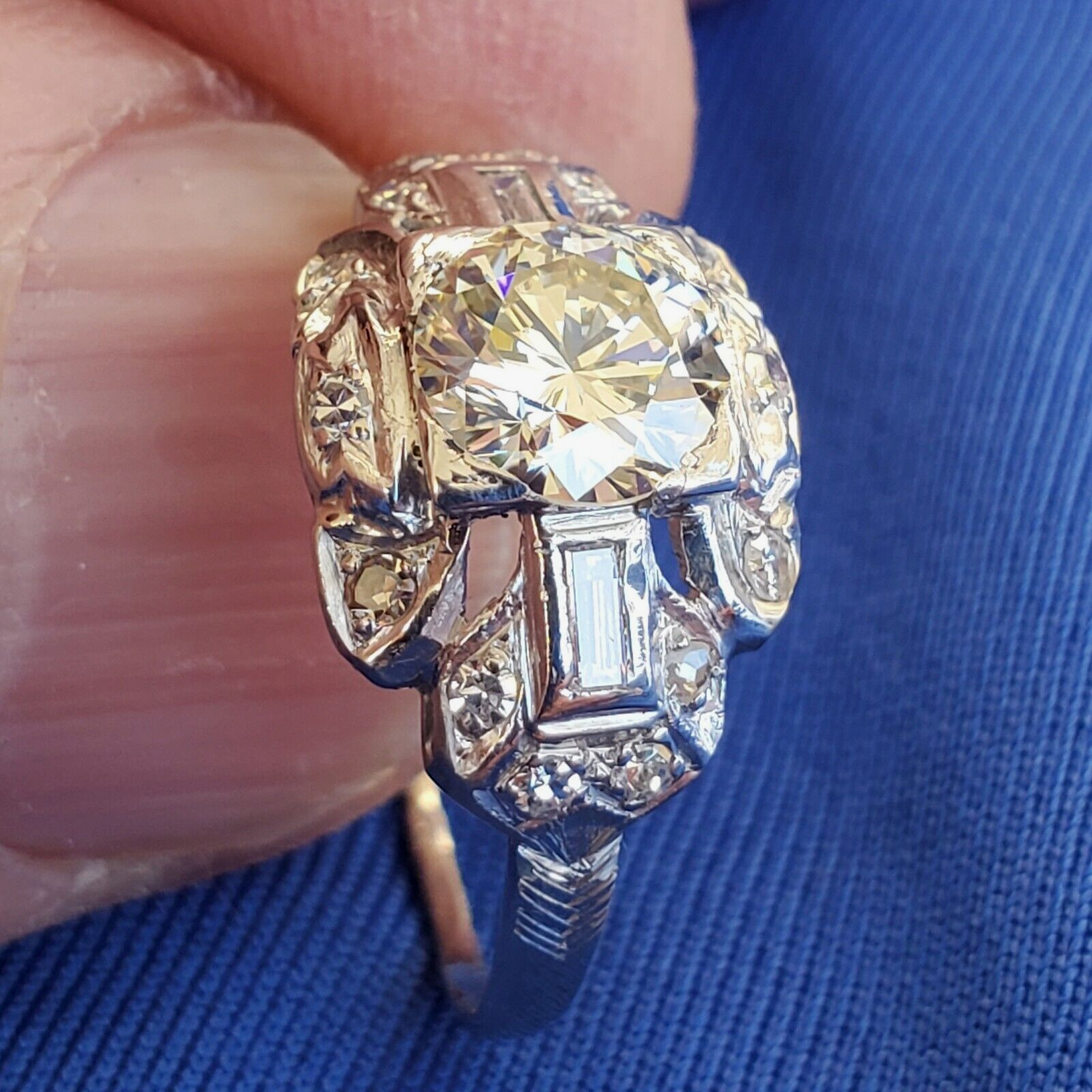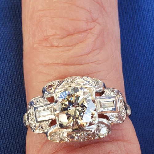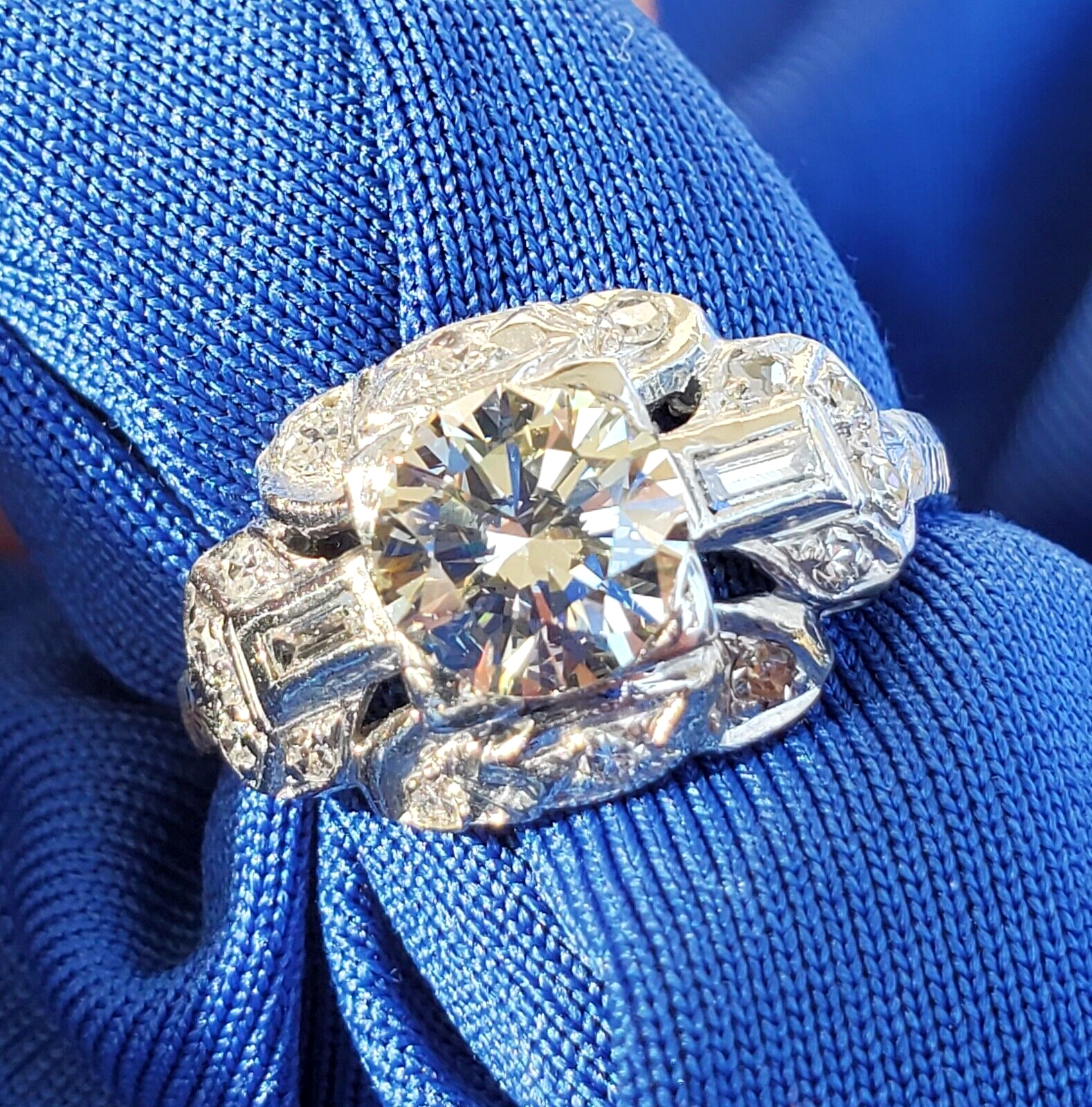 - Earth mined Diamond Deco Engagement Ring 1.26 carat Vintage Platinum Solitaire 6