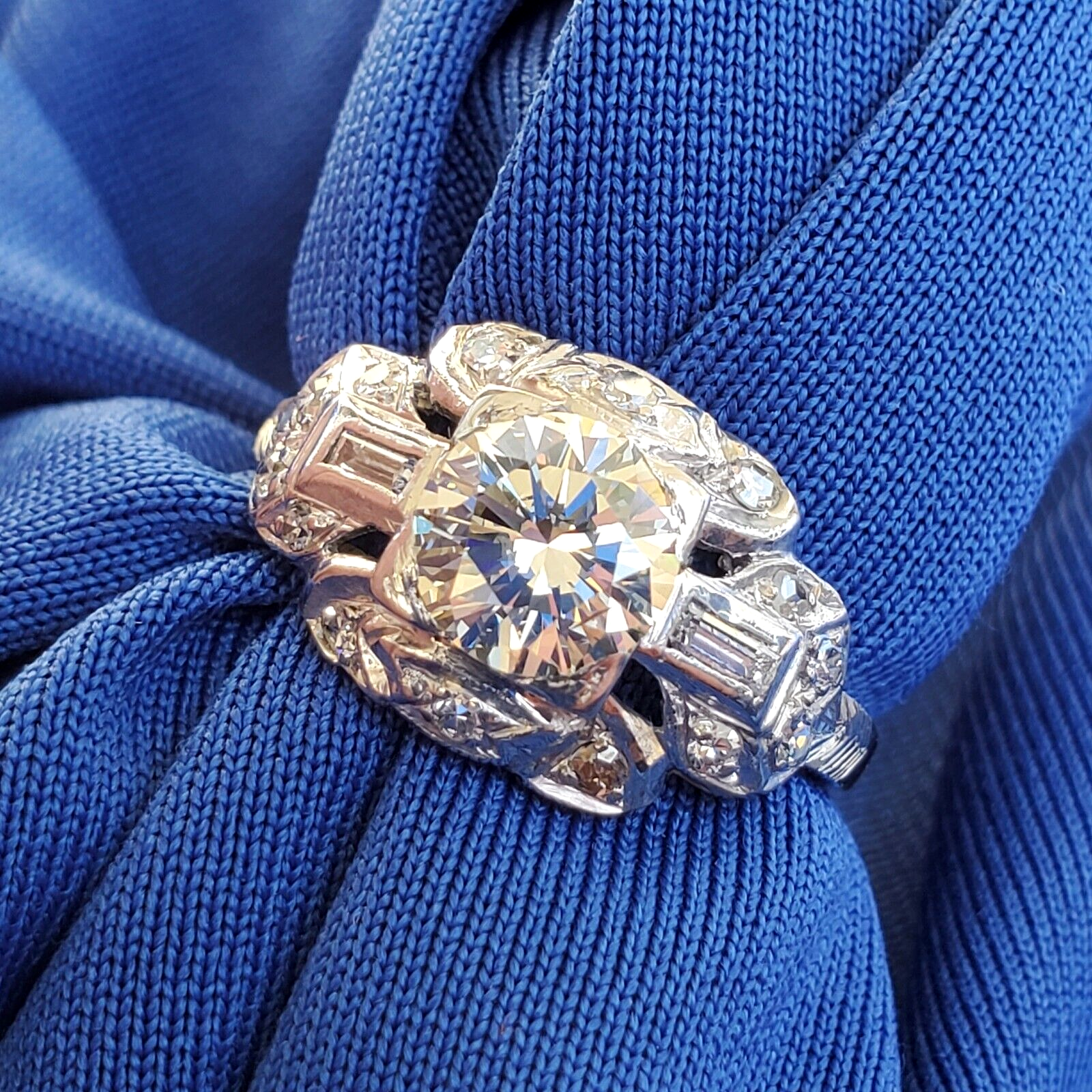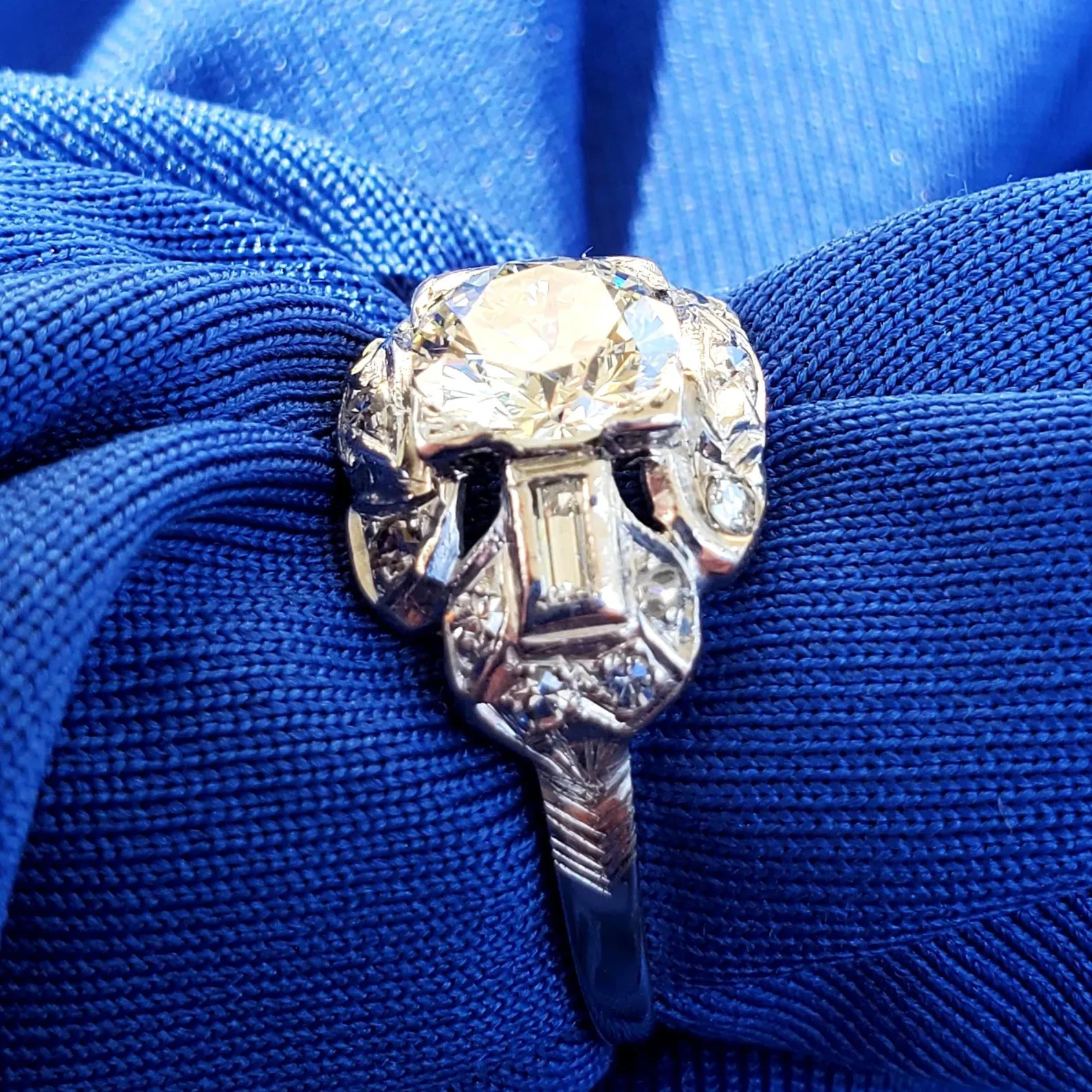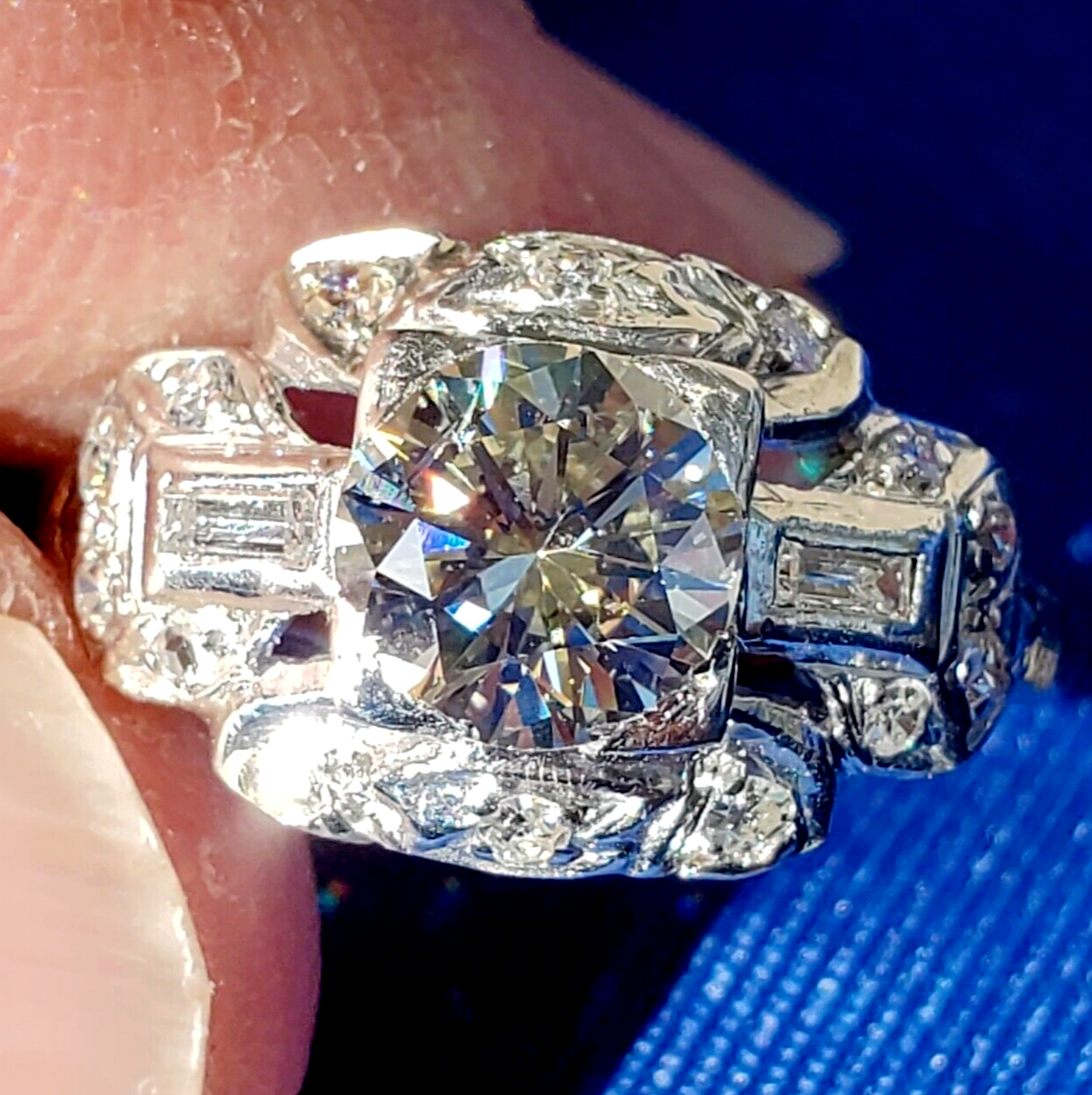Earth mined Diamond Deco Engagement Ring 1.26 carat Vintage Platinum Solitaire 6